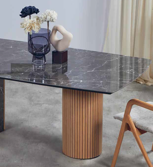 Allero dining table of elegant, classic design ideal for your dining room or kitchen. The ceramic or wooden venneer top surface in combination with the stylish frame will undoubtedly upgrade the style and elegance in your dining room or kitchen area.