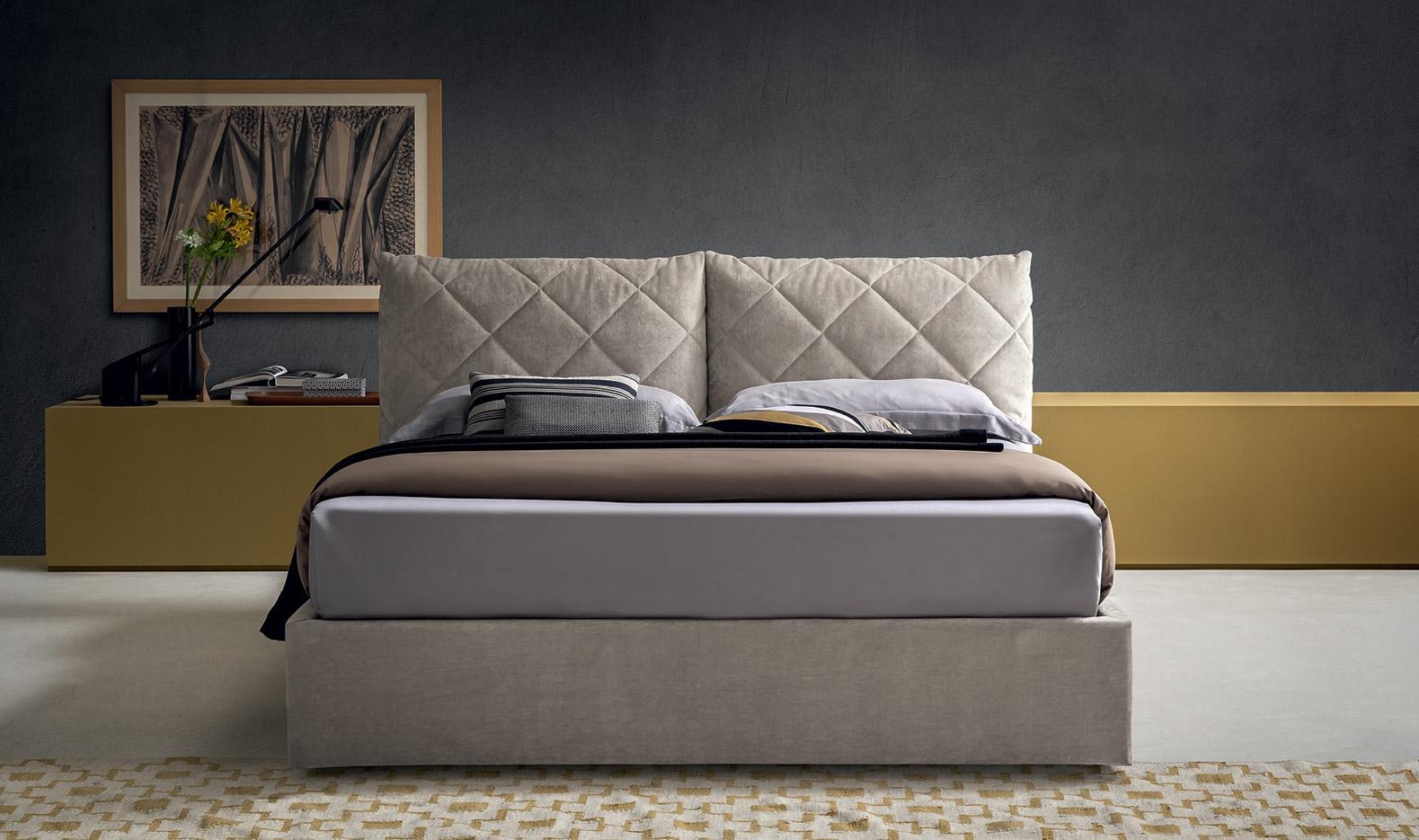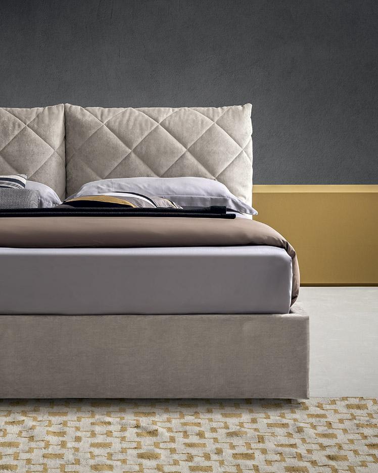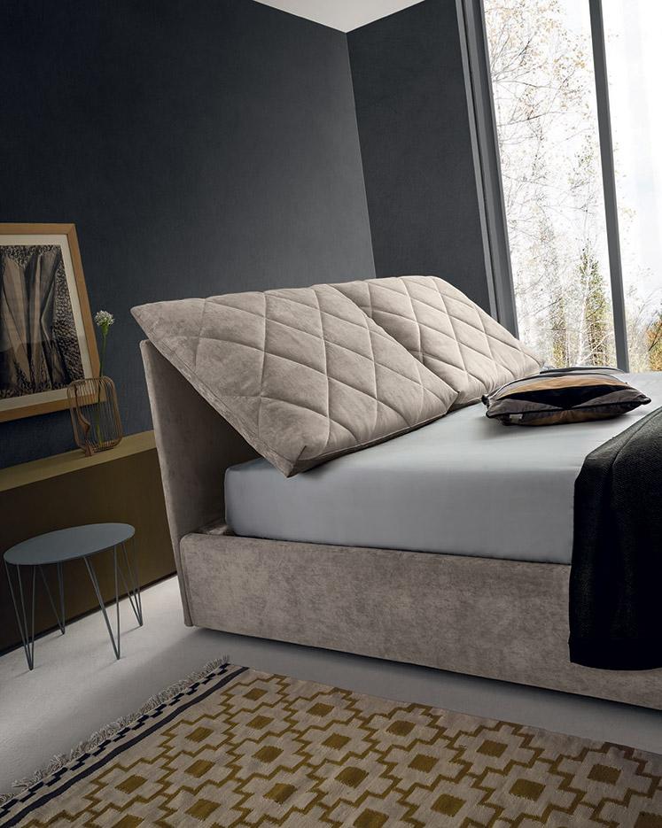 Allen’s big cushions are enhanced with a quilted fabric, a classic reference set in a modern context. They can be moved around and placed in the “relaxation” position, which provides comfy support so you can relax in front of a good book.
