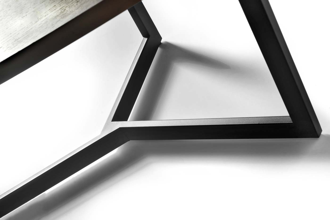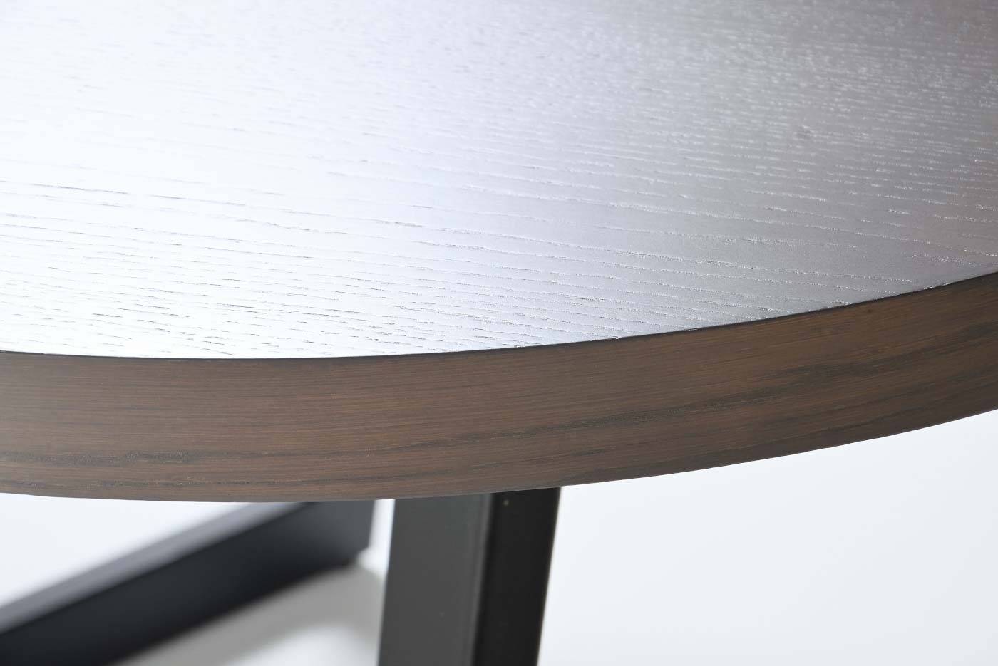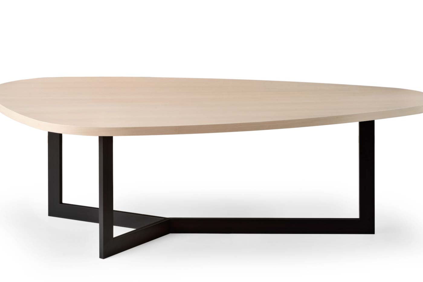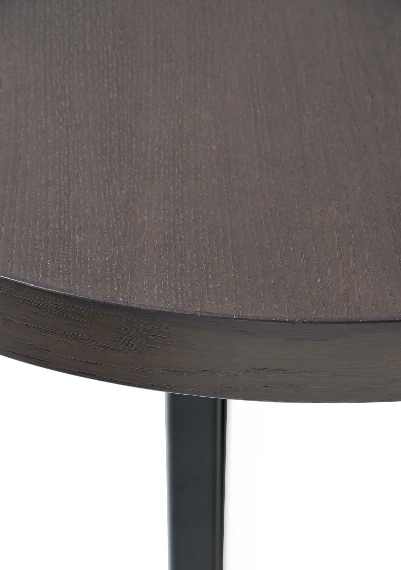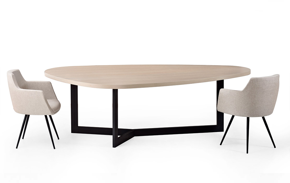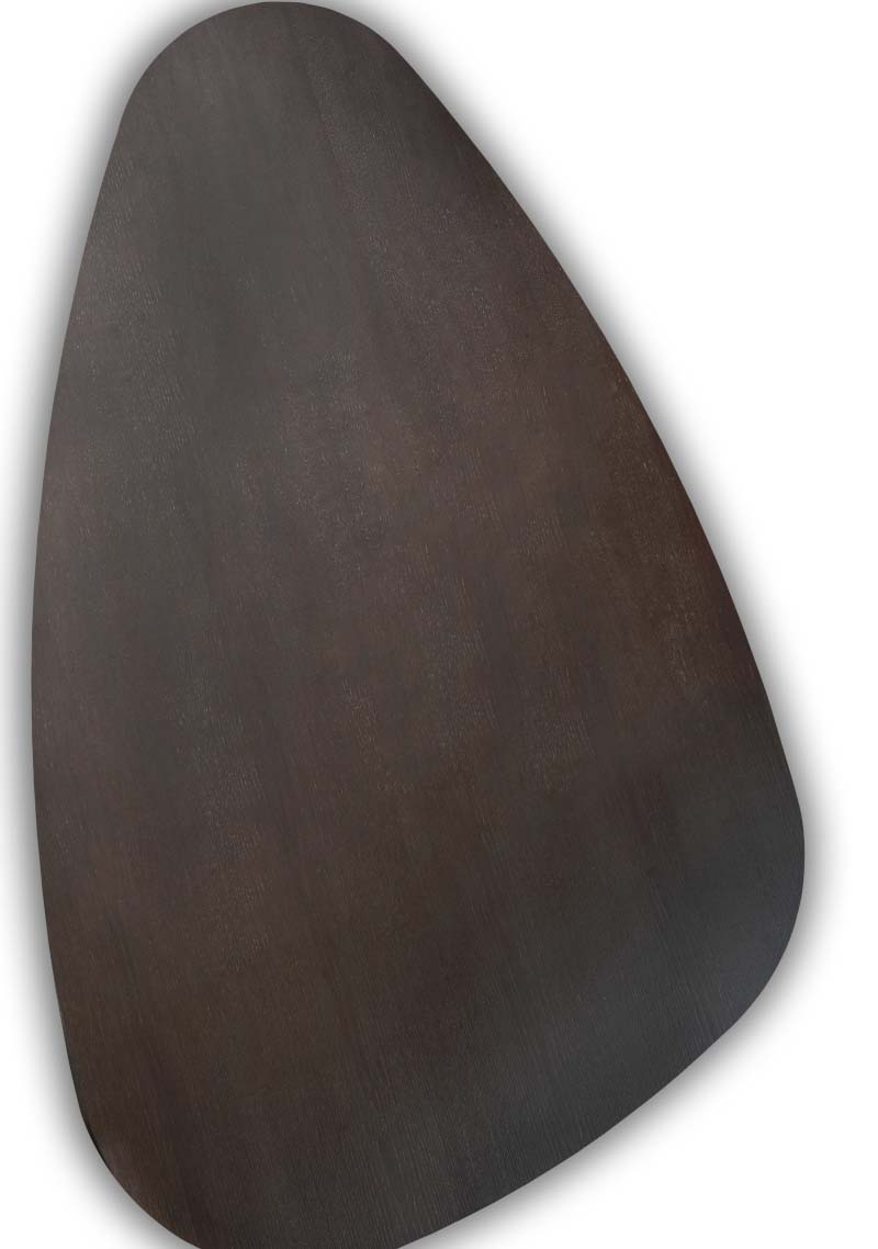 Table in various sizes with veneer and “egg” shape top. Base: Metal