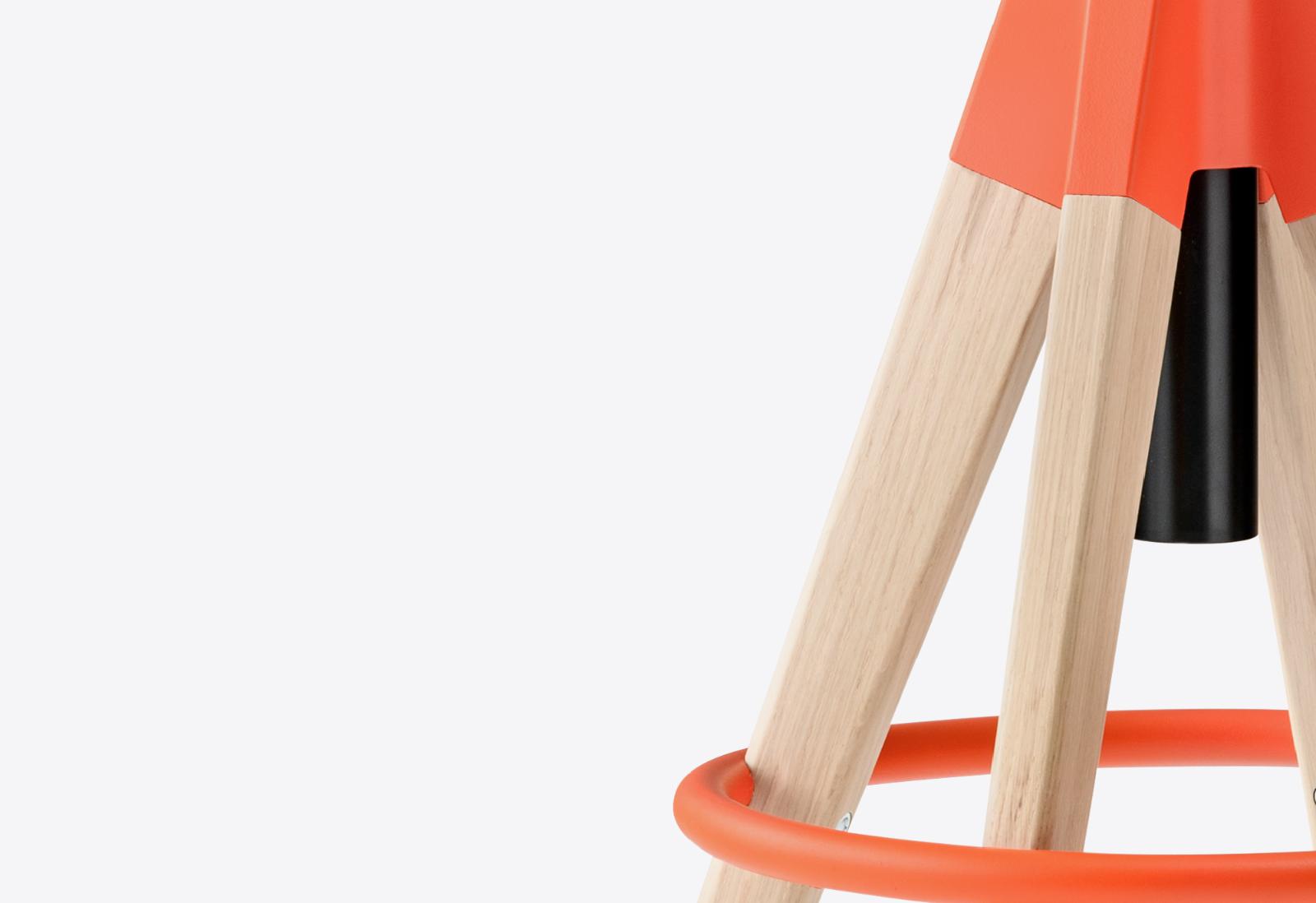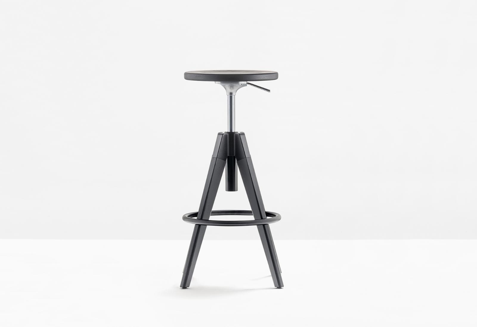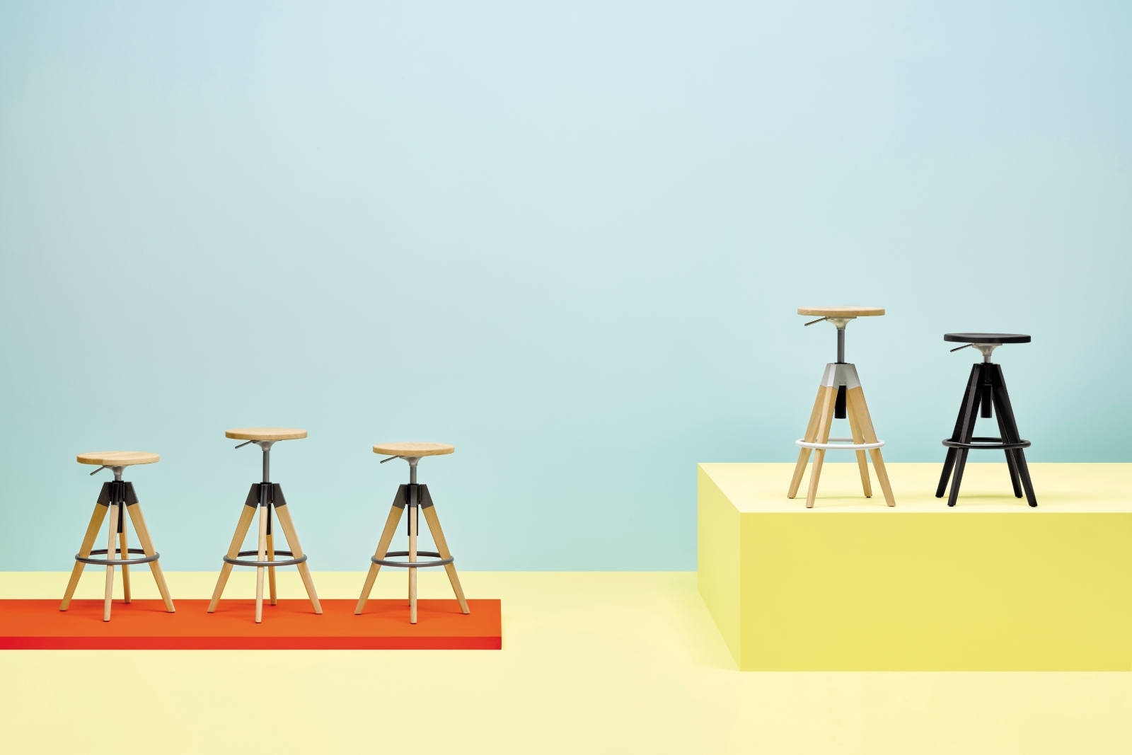 Arki-Stool joins Arki collection which reviews the industrial look in a functional way. A barstool with solid oak seat and legs, swivel and with gas lift device, to easily change the height. A steel footrest on the legs creates a nice contrast to the naturalness of the wood.
