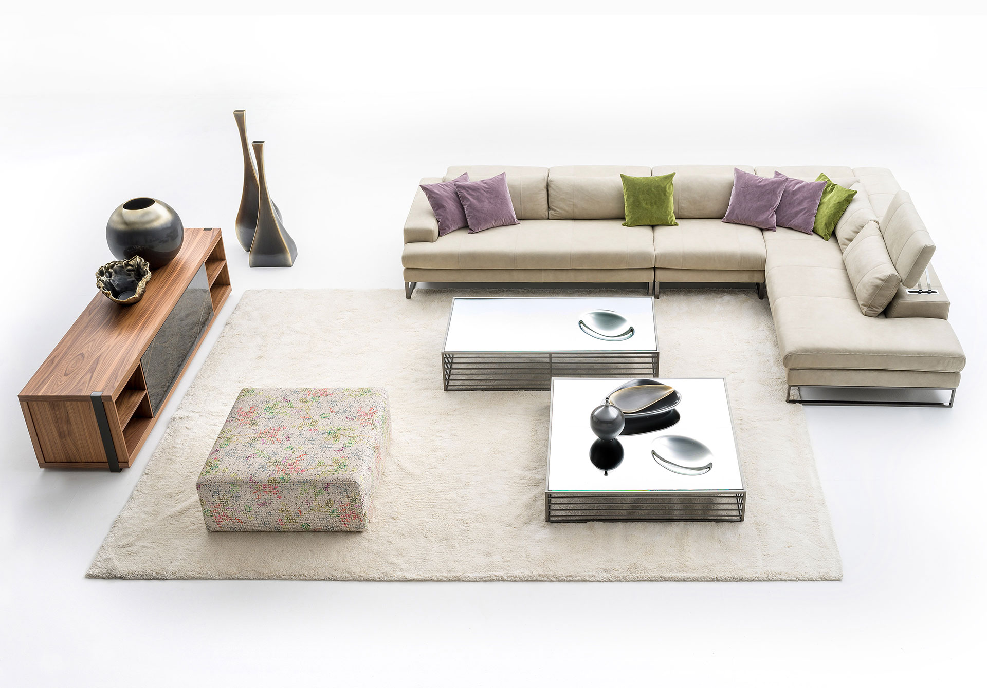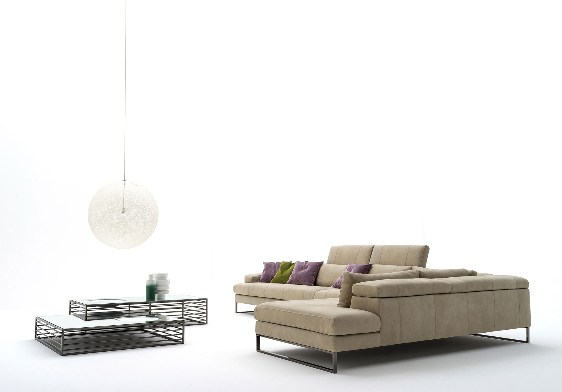A style combined between extremely modern lines and attention to detail, with advanced artisan techniques. The Armonia collection allows you to create, in maximum comfort, different compositions and pleasant islands of relaxation with large and elegant chaise longues in the leather and fabric version.