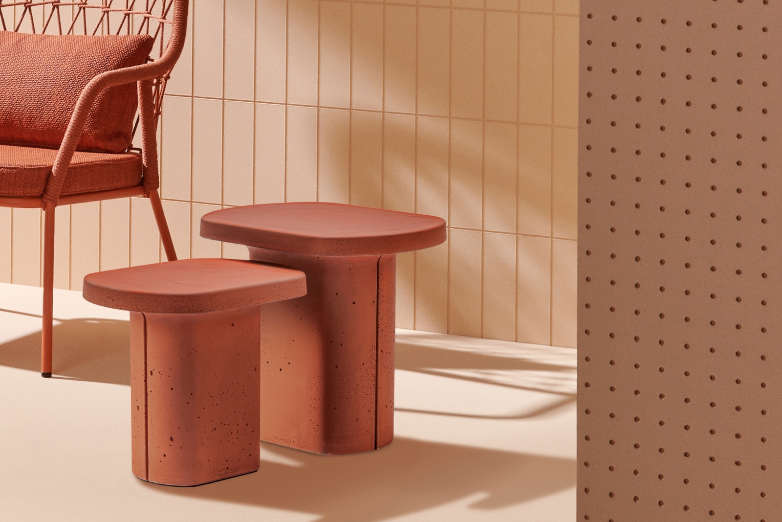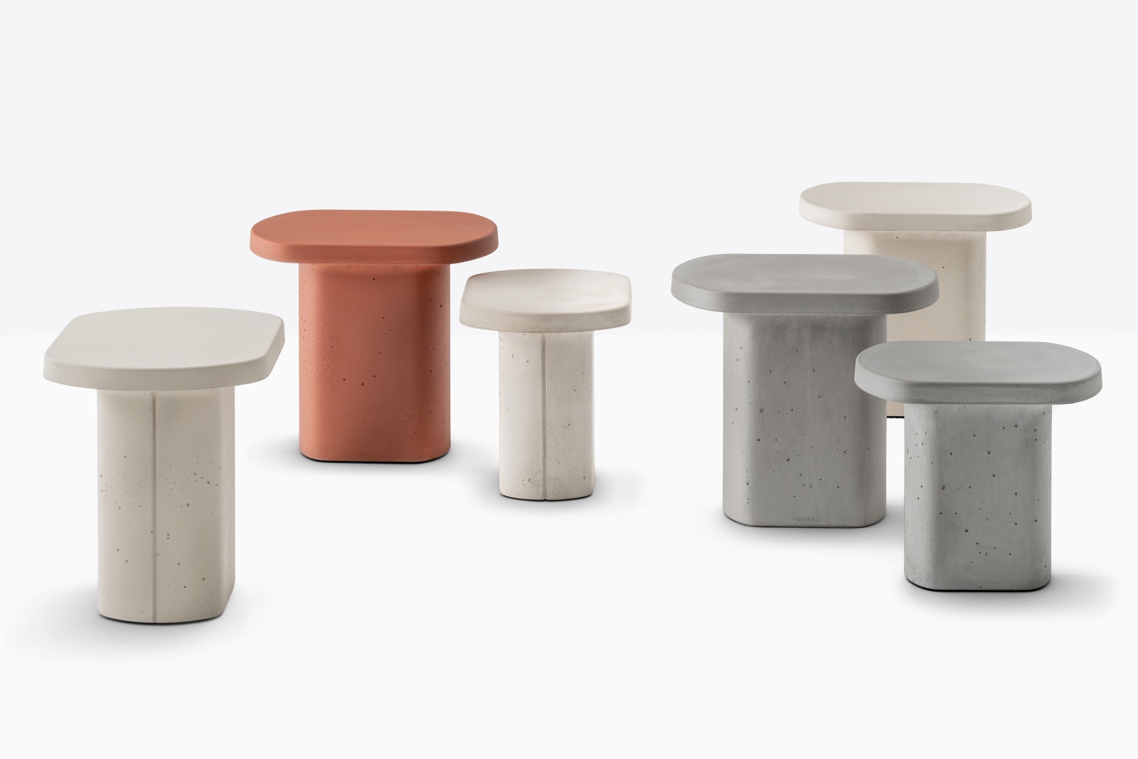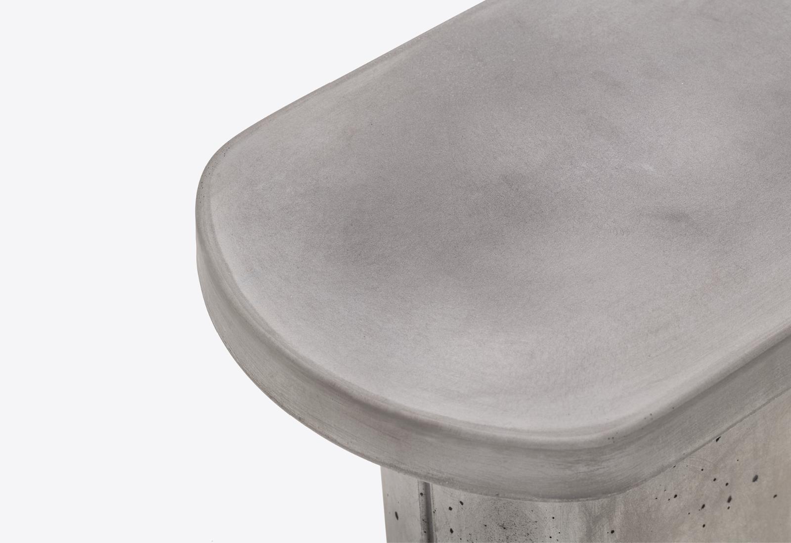 Caementum is characterised by an intrinsically delicate geometry. A single-piece concrete table with a central base. The addition of carefully selected additives makes the highly resistant material guarantee excellent technical performance, including ease of cleaning, greater resistance to mechanical stresses and weathering, and low permeability to liquids and stains. The base also comes with a nylon foot so as not to damage the surfaces it comes into contact with, while the inside is hollow to make it easier to move. Caementum is designed to create various compositions, and can adapt to any context, especially outdoors, both in public and residential settings.