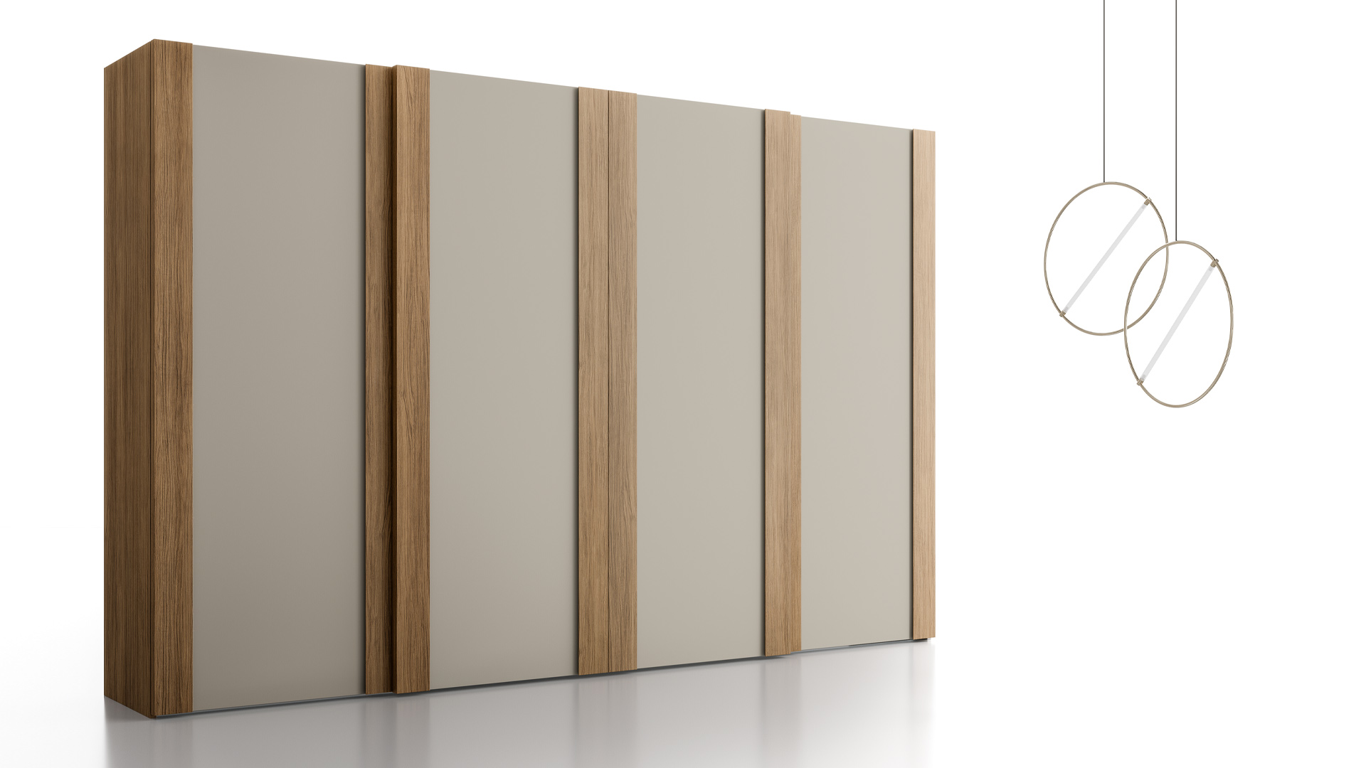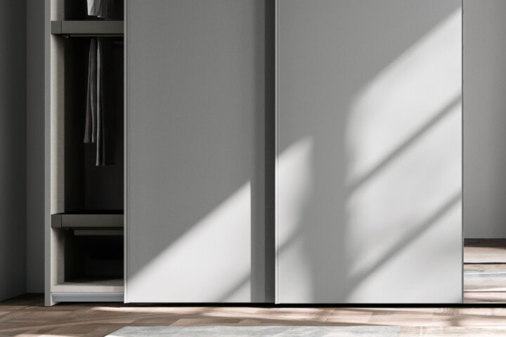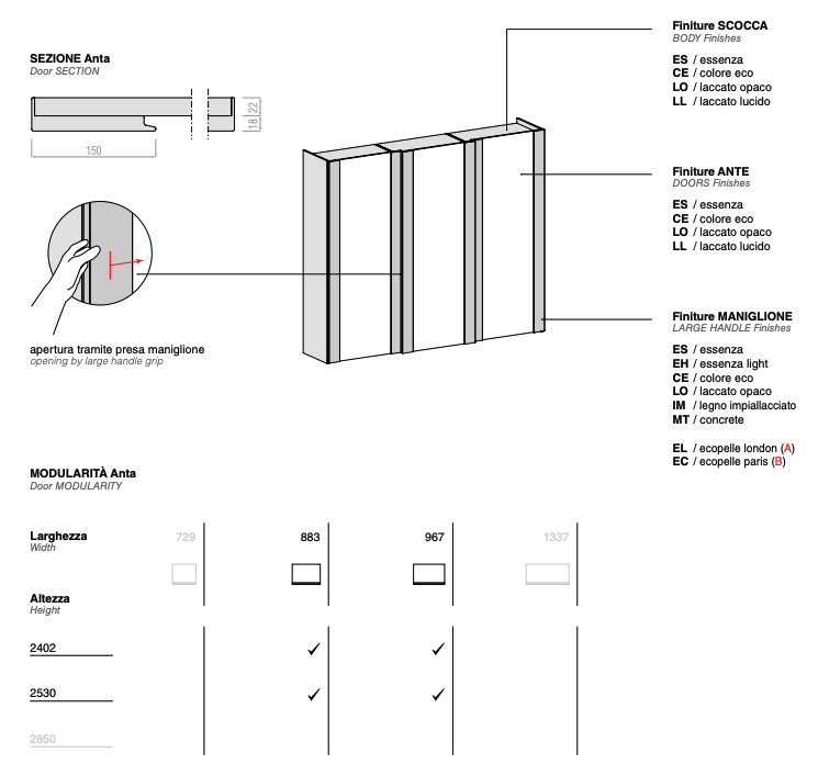 Double Sliding door Product Information A sleek-style wardrobe with sliding doors featuring a vertical panel that can be personalised in different finishes.
