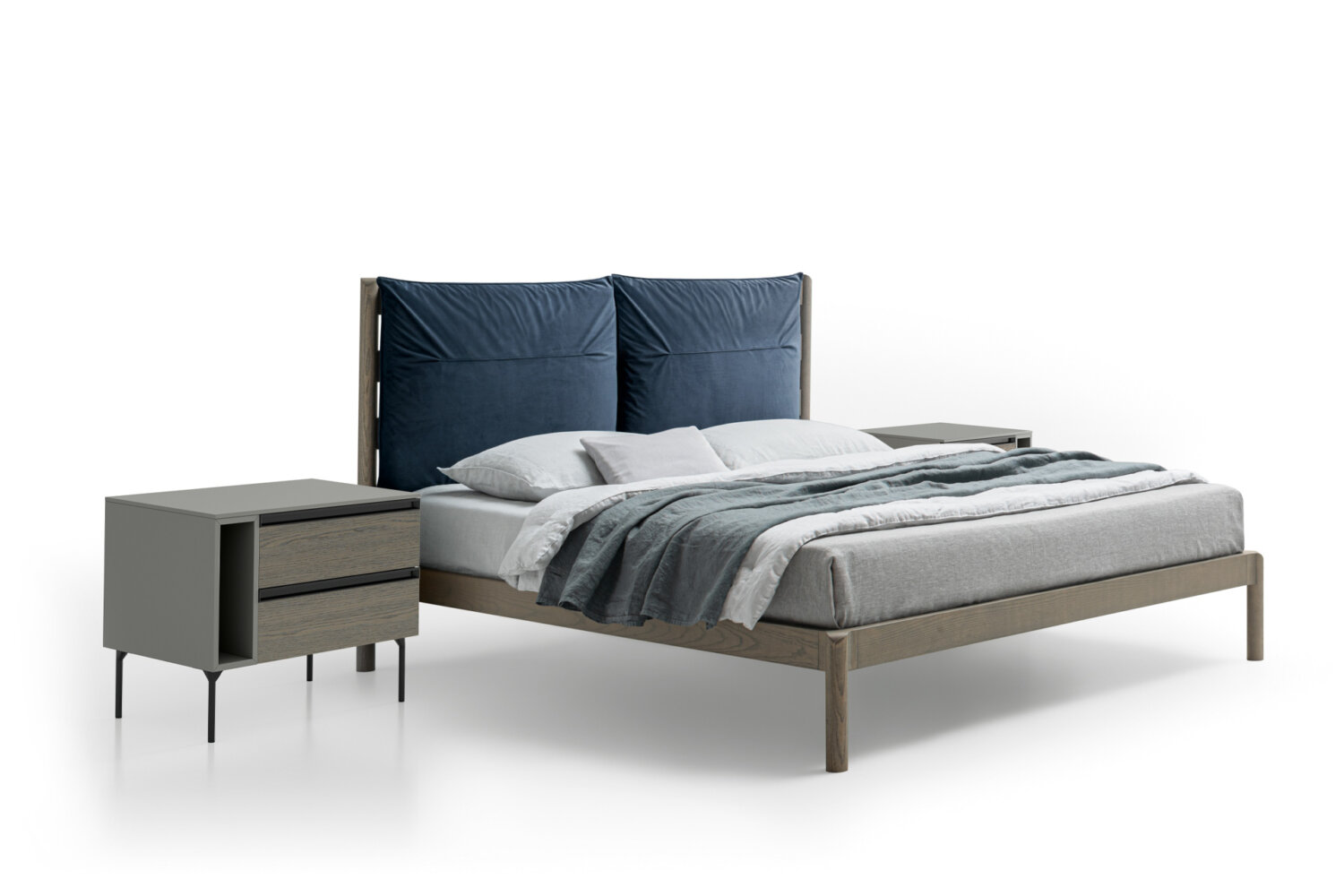 Espero bed Add to the modern design of the bed with cushions on the headboard, bringing a soft touch to the bedroom space.The Espero bed is available with Wing cushions, with Cling cushions or without cushions.