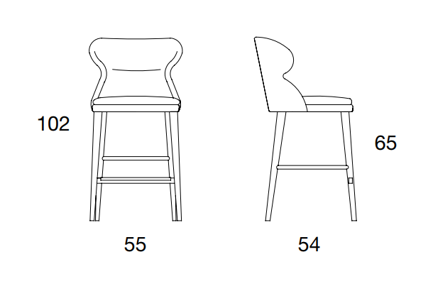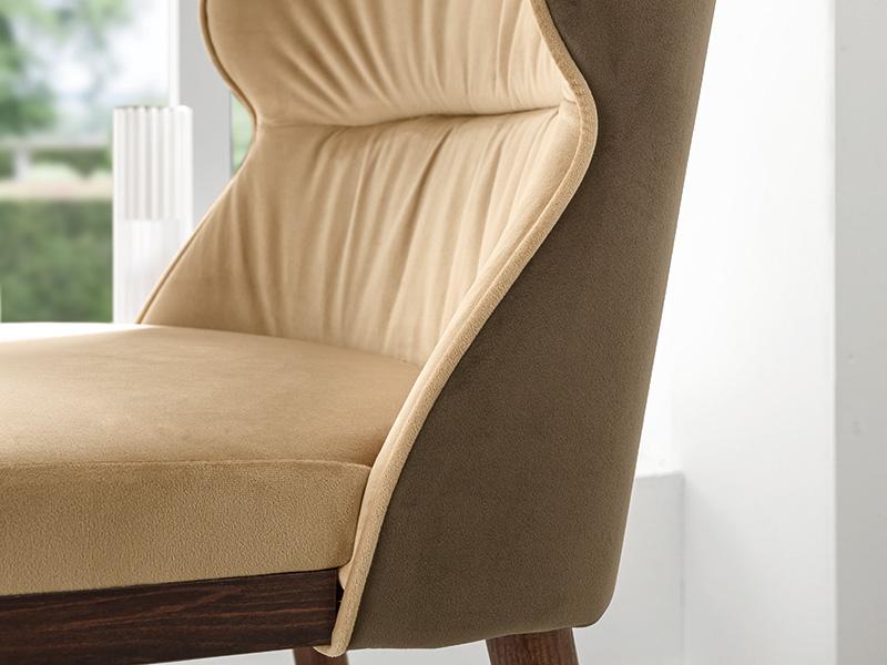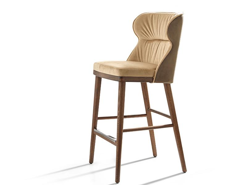 The Fenice stool elevates its eclectic spirit by bringing the comfortable seat of the homonymous armchair to another height, to offer service combined with counters or islands present in modern furnishings. The structure is presented here in Canaletto stained ash. The backrest is dressed for the occasion in a soft two-tone velvet that follows in the seat with the lighter tone.