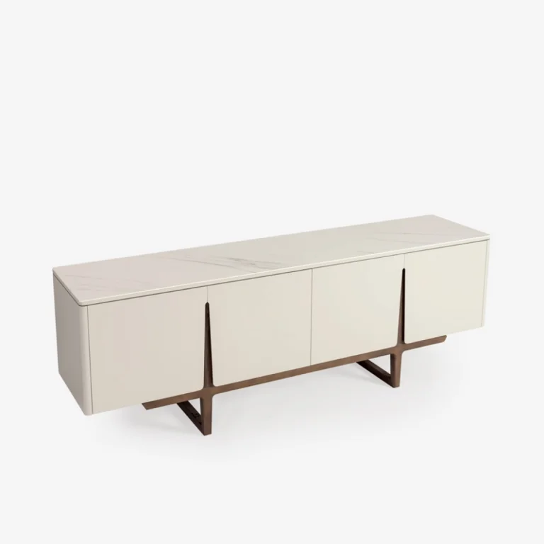 The Franko sideboard captures the typical minimalist design with the refined finish creating its own personality. Its main feature is the line that carefully separates the doors, bringing a modern dynamism to the piece of furniture. Finally, the addition of ceramic to its surface gives a fresh, luxurious but not heavy effect.