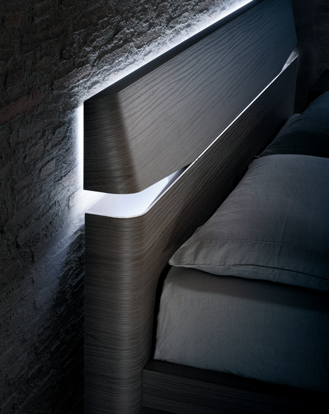 The bed is fully finished in wood grain with a bold headboard design feature.The cuts into both sides of the headboard break up the straight lines of the frame. This modern detail is ideal if you love seeing regular shapes jazzed up with an original touch. The wood grain is accentuated through this creative design.