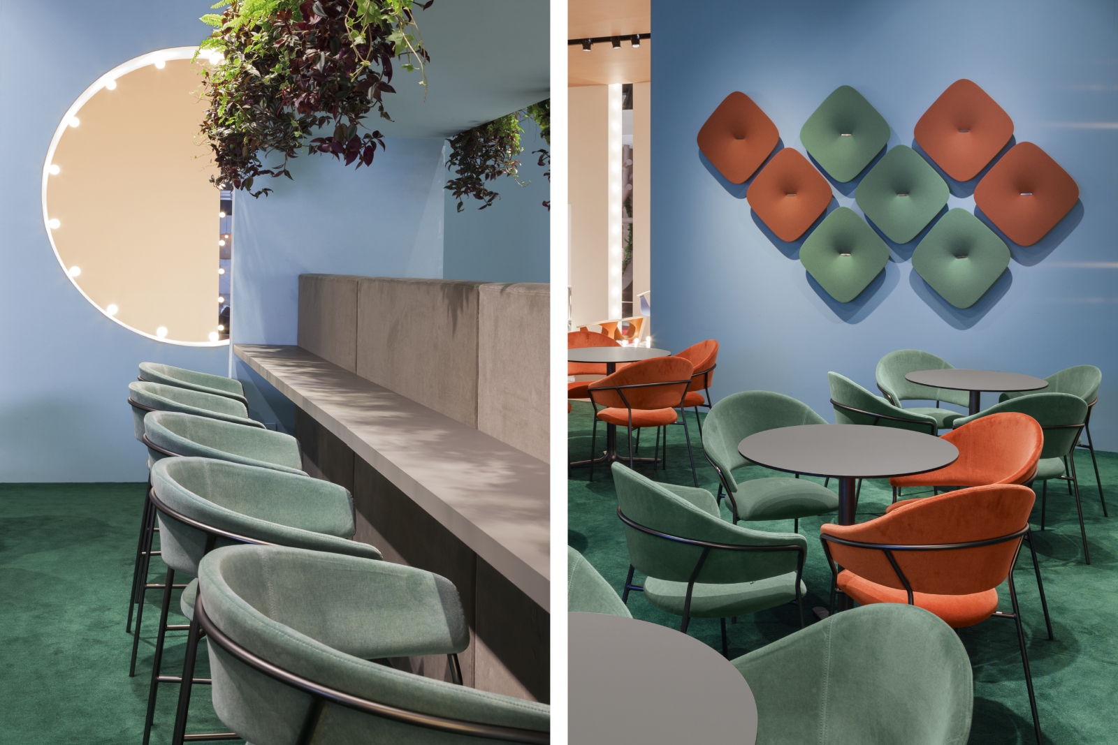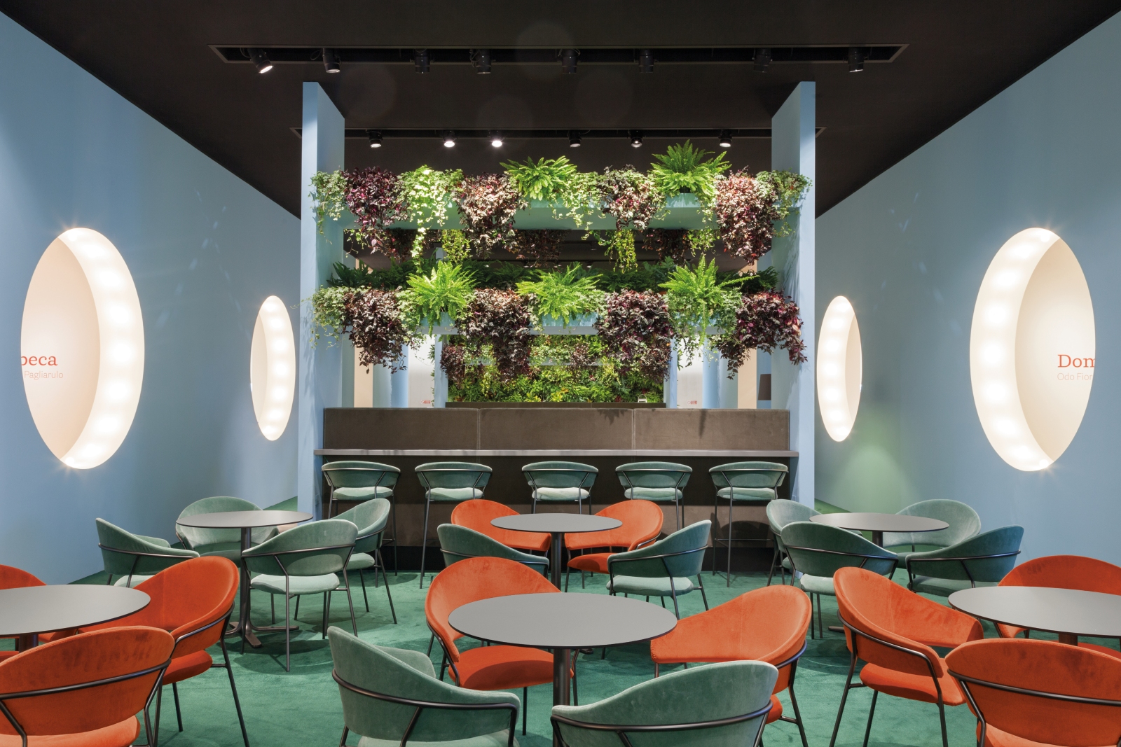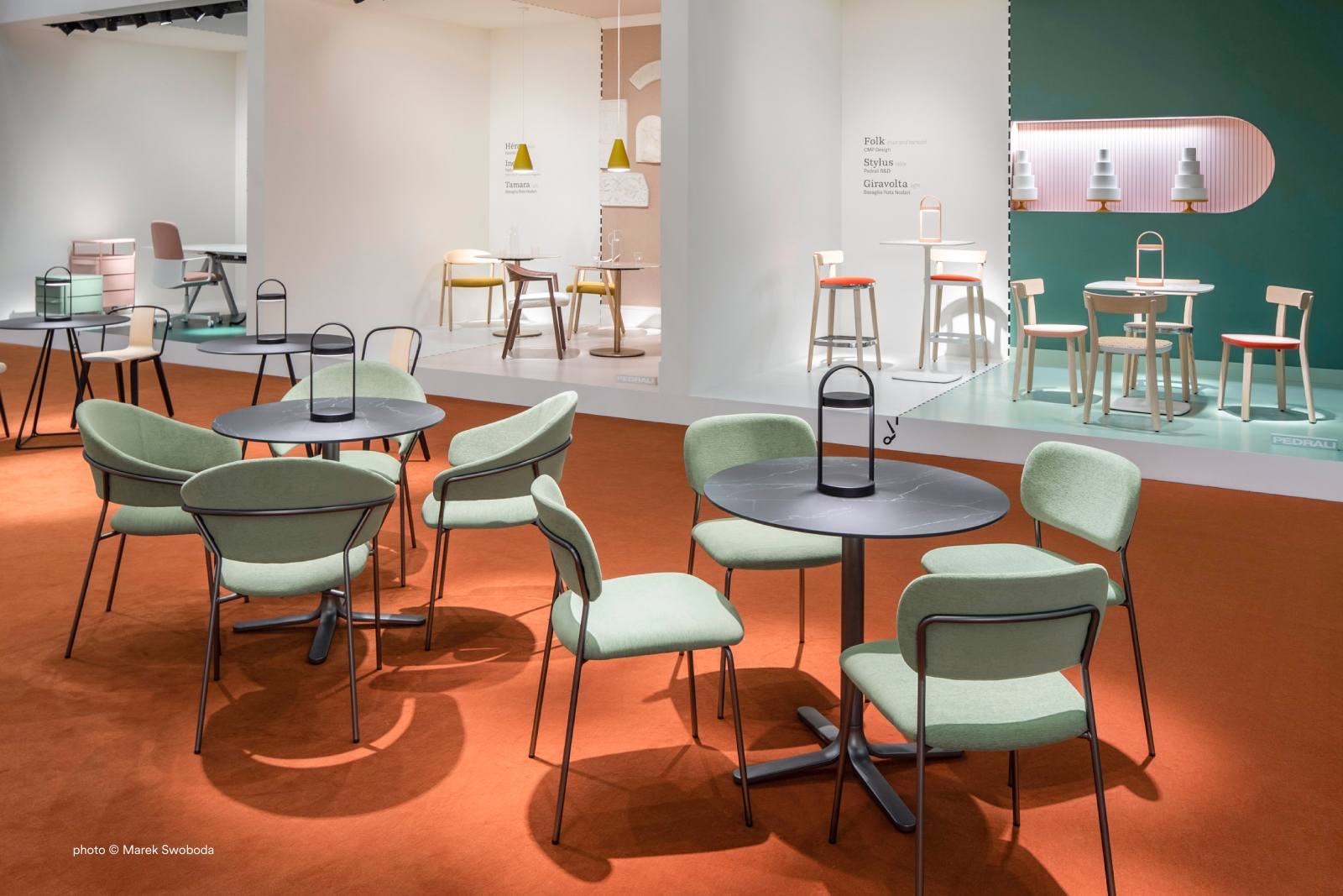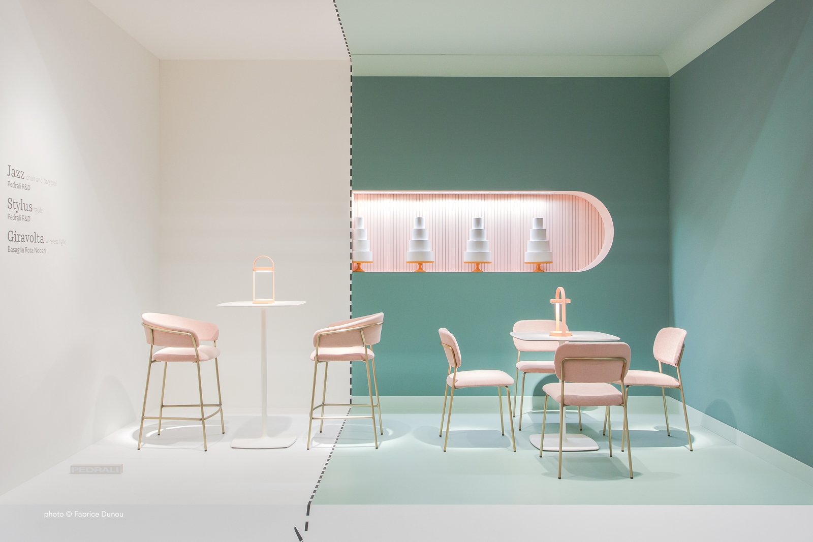 Harmony of shapes, ergonomics and elegance are the characteristics of the Jazz stool. The seat and the curved backrest are supported by a light steel structure. Personalization is ensured by the combination of the upholstery, in fabric or simil leather, and different steel finishes.