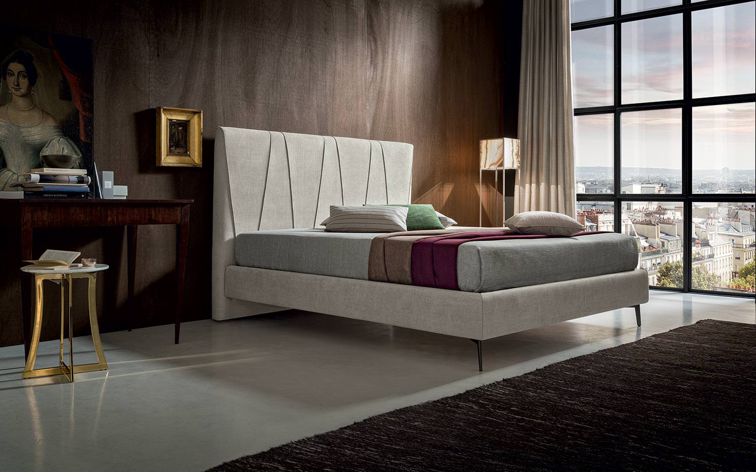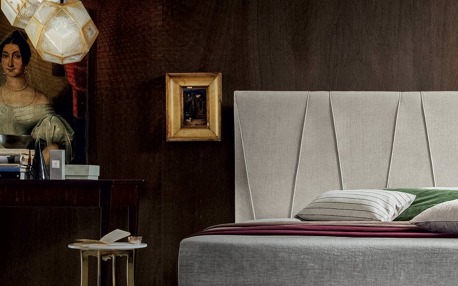 JULIUS Product Information The headboard on Julius is embellished with a cord design in relief creating a minimalist pattern and giving it a hint of dynamism.