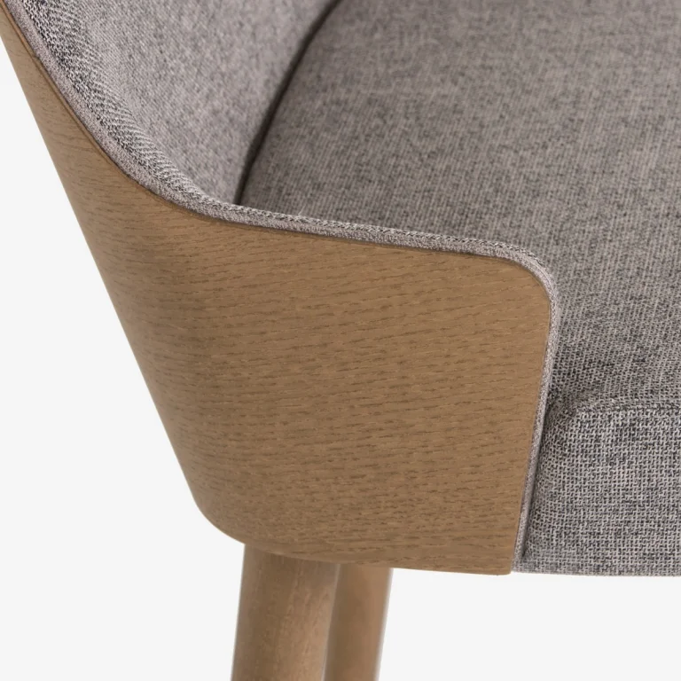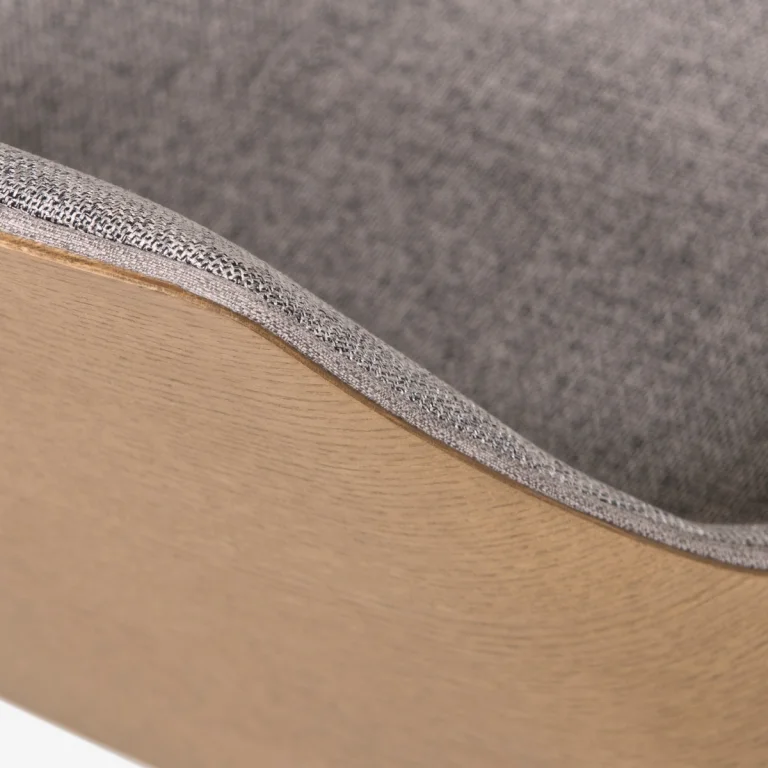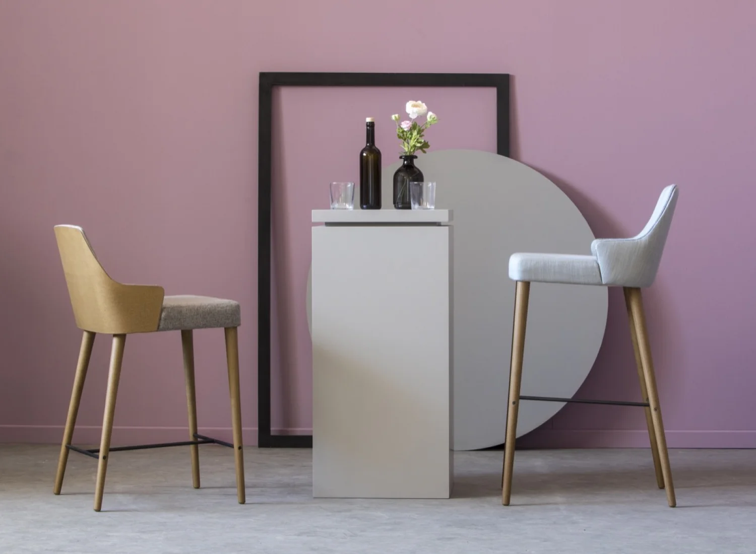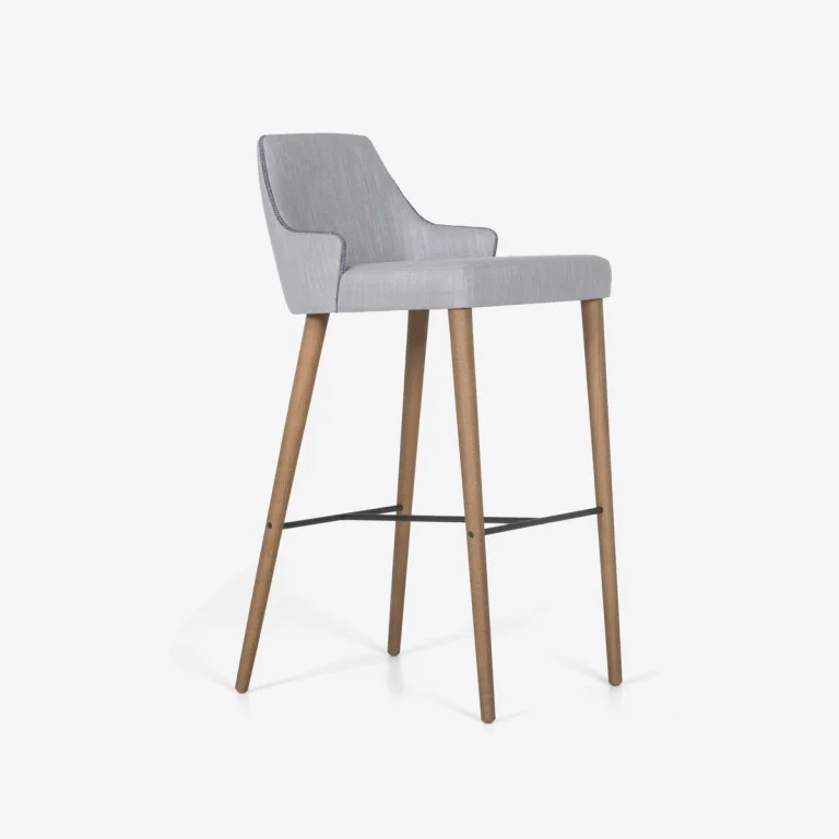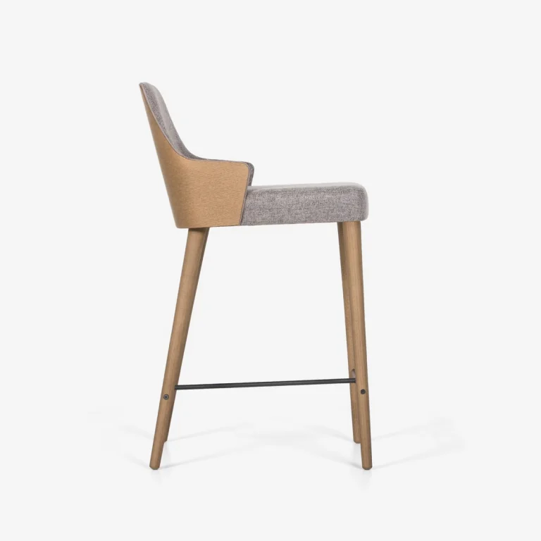 The Lilla stool has a minimal design, following a retro aesthetic, which effortlessly mixes vintage glam with contemporary style. Lilla is a handmade stool, made with high quality materials. It is suitable for both home and professional use. It is produced in two different heights, and you can choose the back either covered in fabric or veneer.