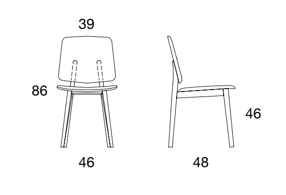 Wooden chair, upholstered seat and back. Matching stitching.