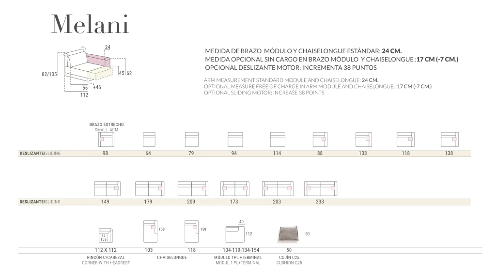 Characteristics .Structure: Solid Pinewood .Suspension: sliding 46 cm metallic framework .Mechanism: Metallic framework and multi positional headrest .Seat:40kg soft polyurethane foam + memory foam .Headrest: super soft foam covered of fibre .Back cushion: Fibre flakes .Removable upholstery: back and seats