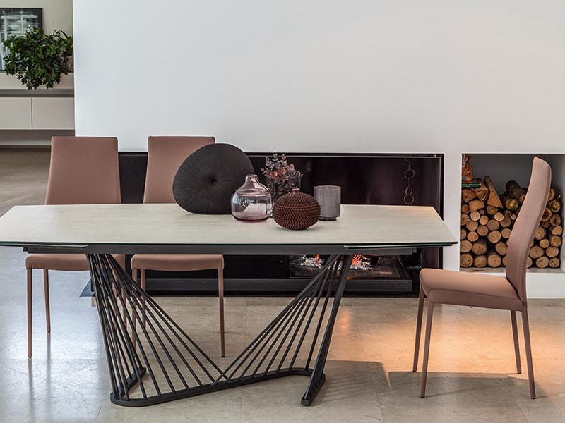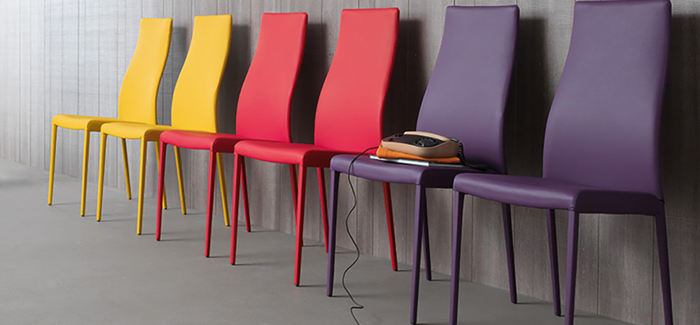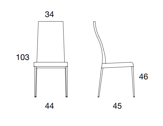 MERILYN Product Information The sinuous backrest of the Marilyn chair seems to give continuity to the lightness of the thin legs that support it. The faux leather or leather finish in various colors elegantly covers every detail of her.