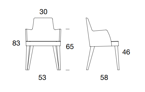 The Mila model is enriched with the armchair version, characterized by the armrests with determined and gritty curves. It comes with a padded side that welcomes the seat and completes its style with the rigid back coordinated with the fnish of the legs.