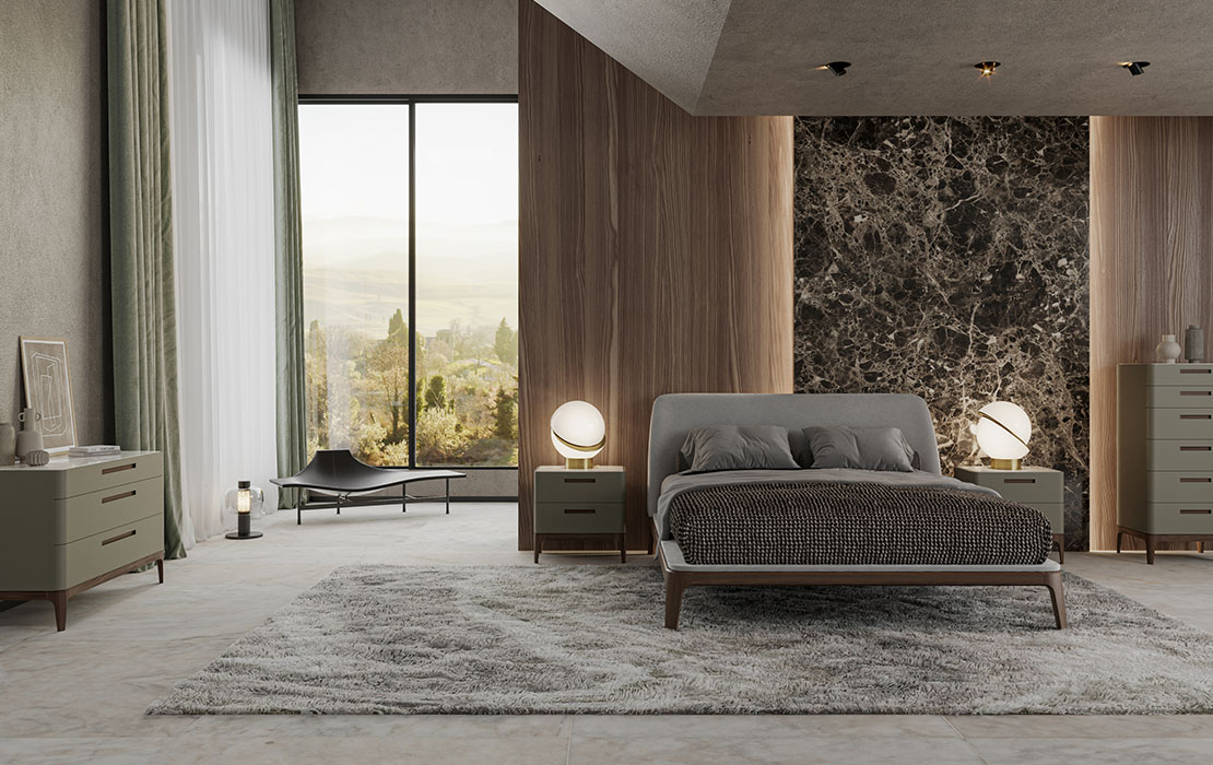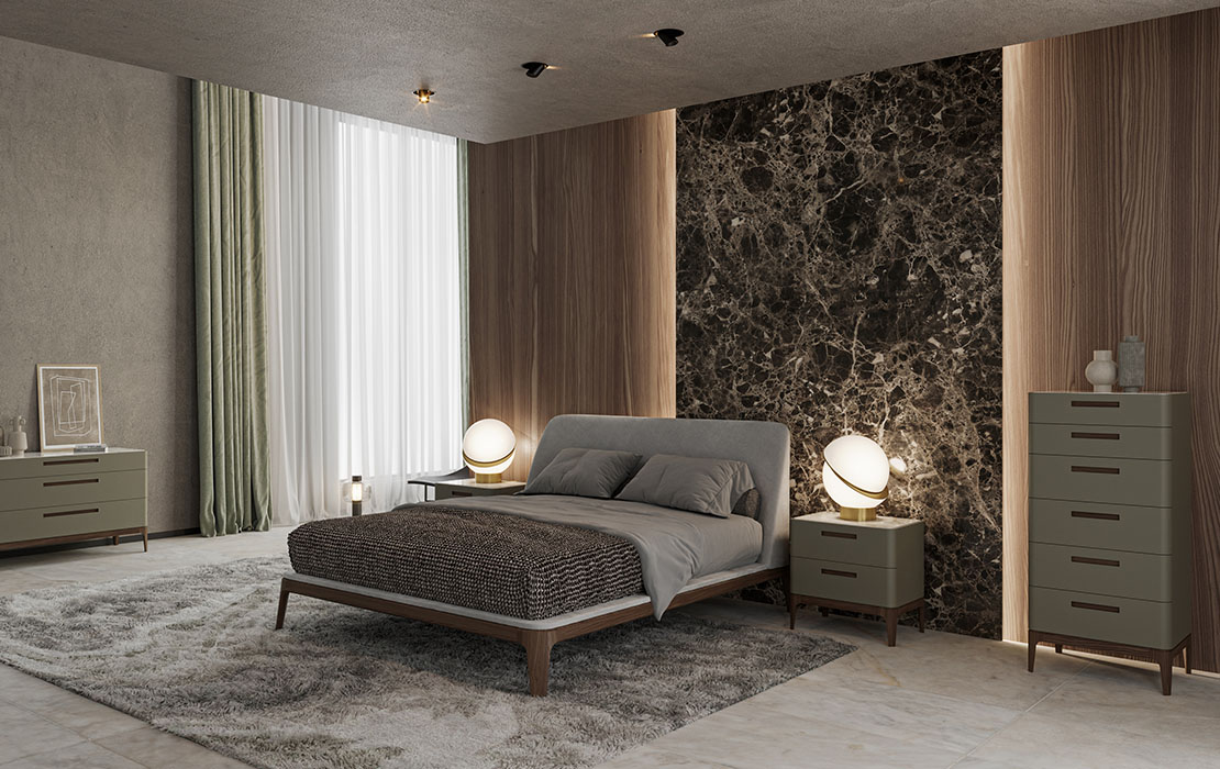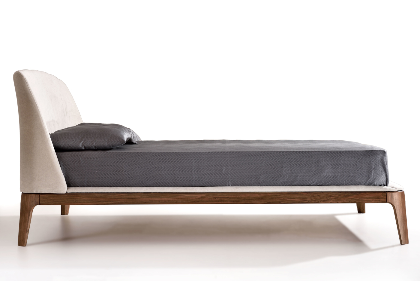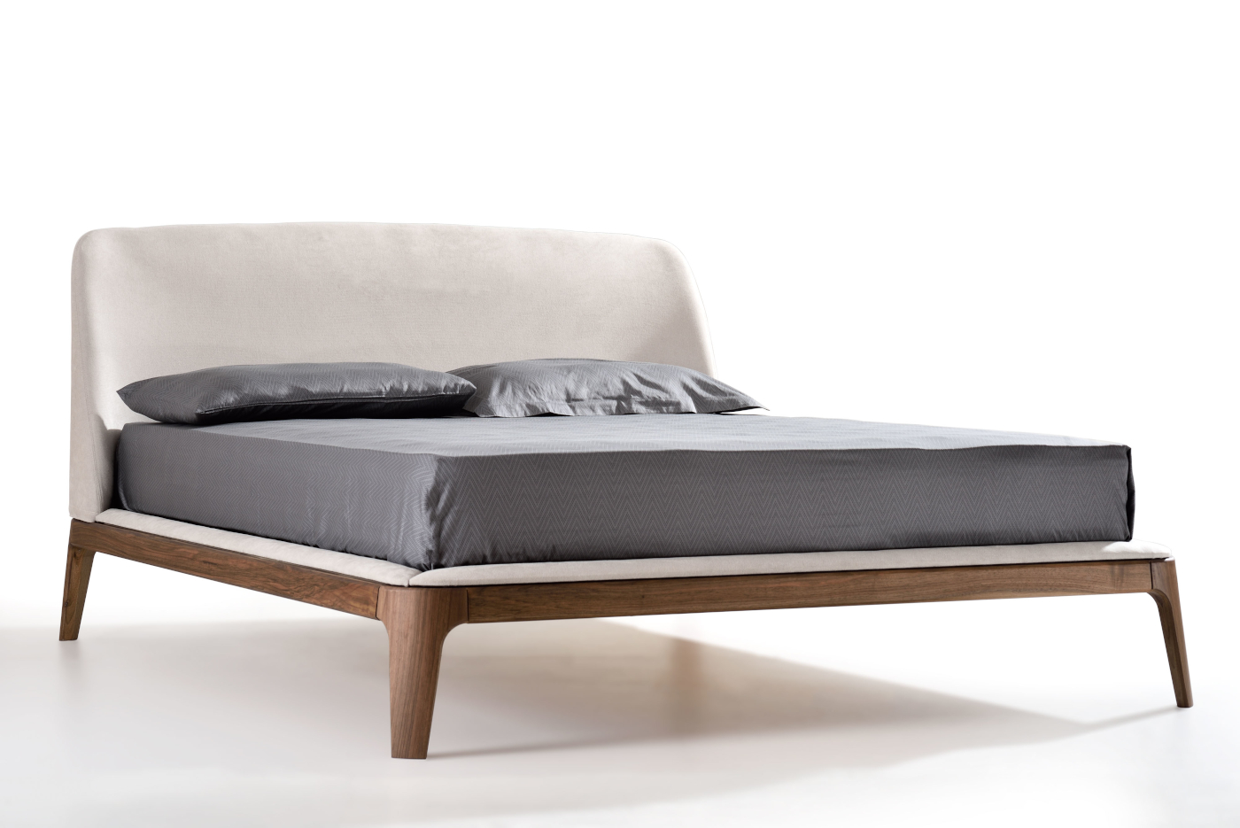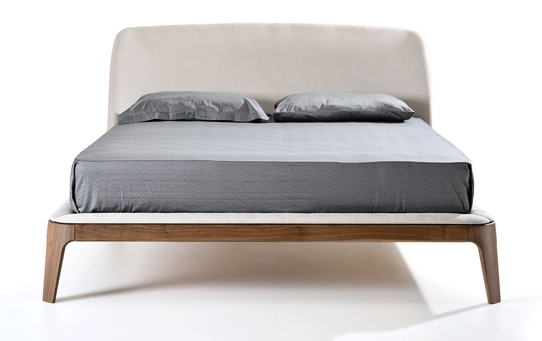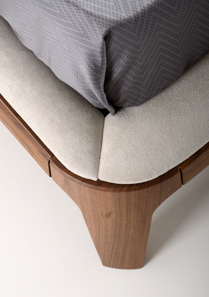 Mod Product Information Bed with solid wood frame, smooth edges and a large headboard that folds on the edge of the bed hugging the matters.