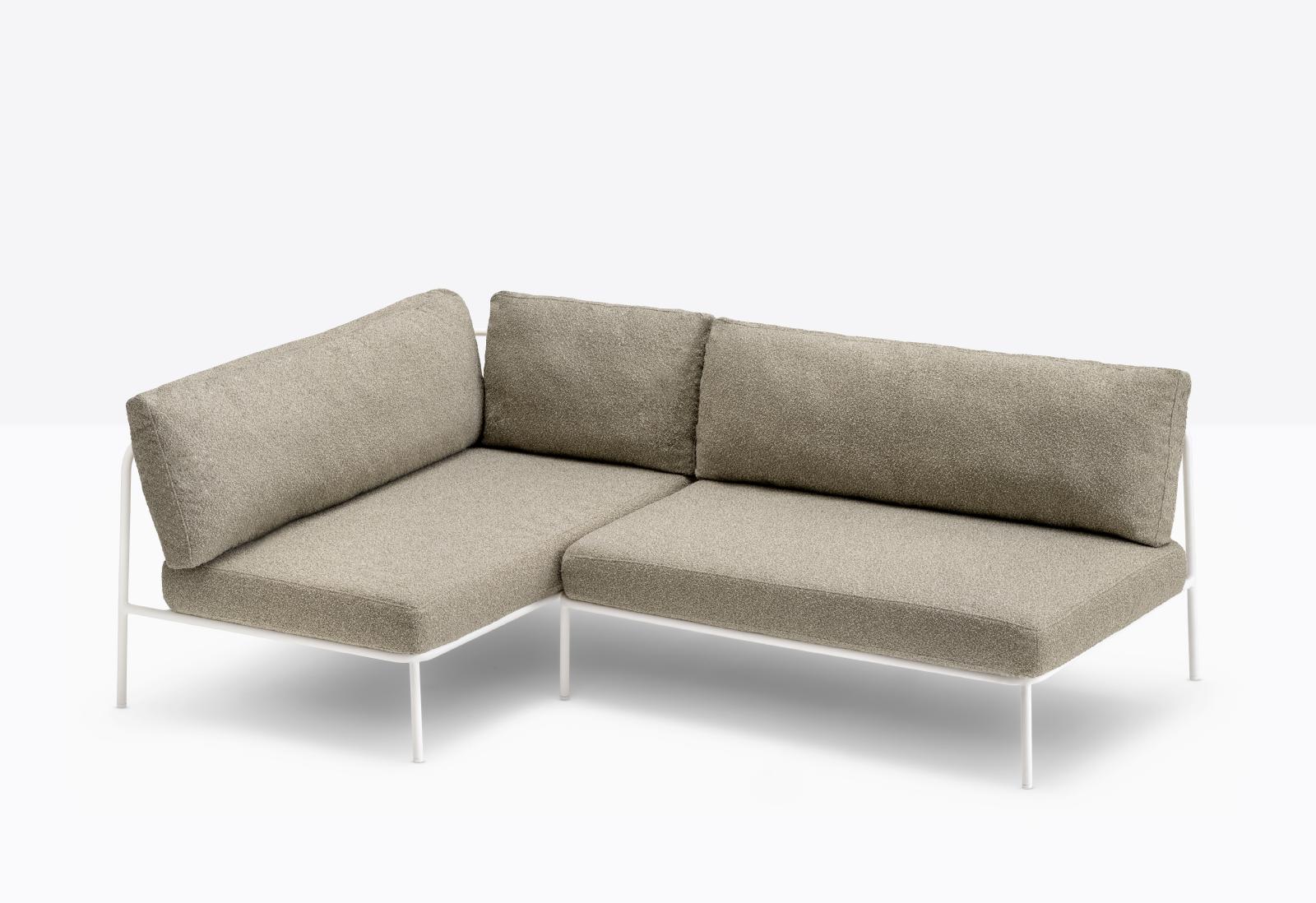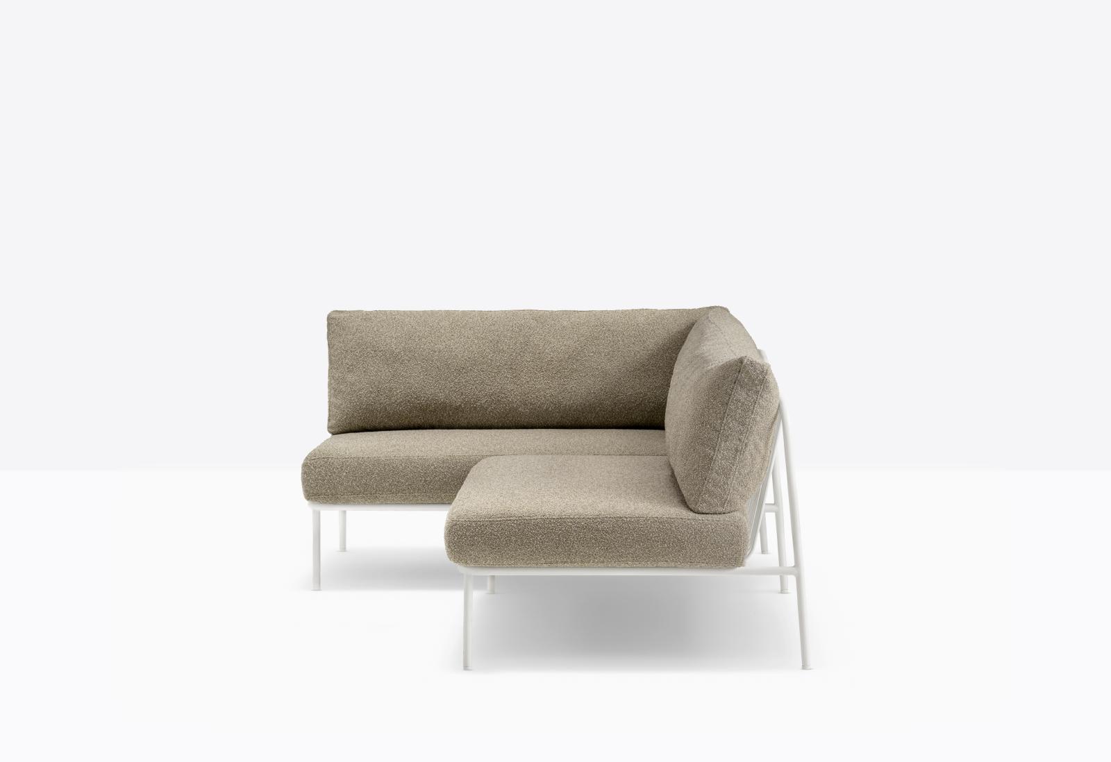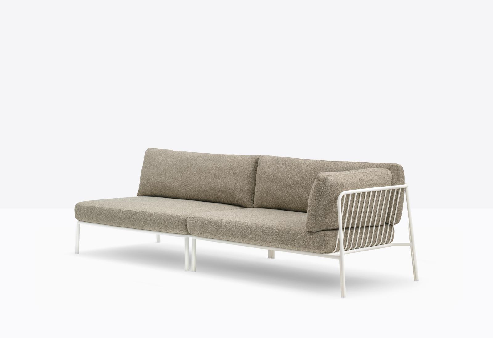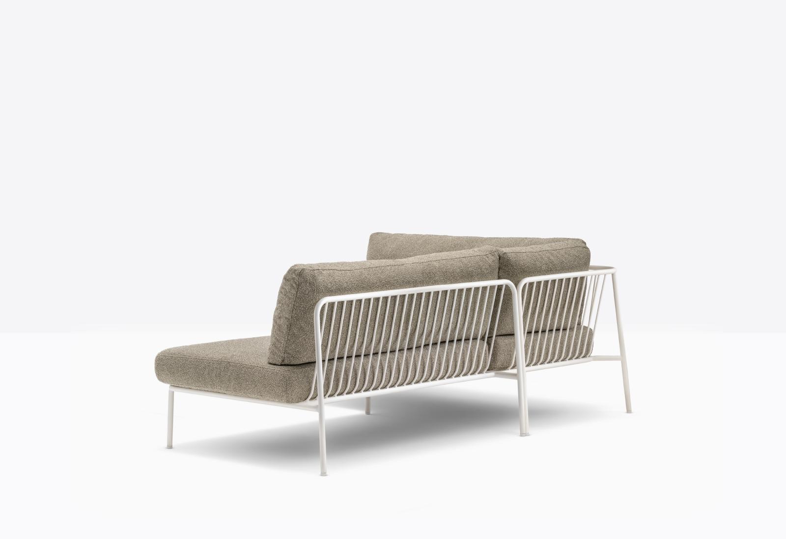 Nolita is a family of outdoor seatings which recalls the origins of a historic course, started by Mario Pedrali in 1963 with his first metal garden chairs. A sofa featuring simple and iconic shapes with steel tube frame powder coated for outdoor use and cushions in waterproof fabric and polyurethane foam inside. The versatility of Nolita sofa lies in the possibility to combine different modules, linear or angular, with right or left armrest, in order to create different compositions.