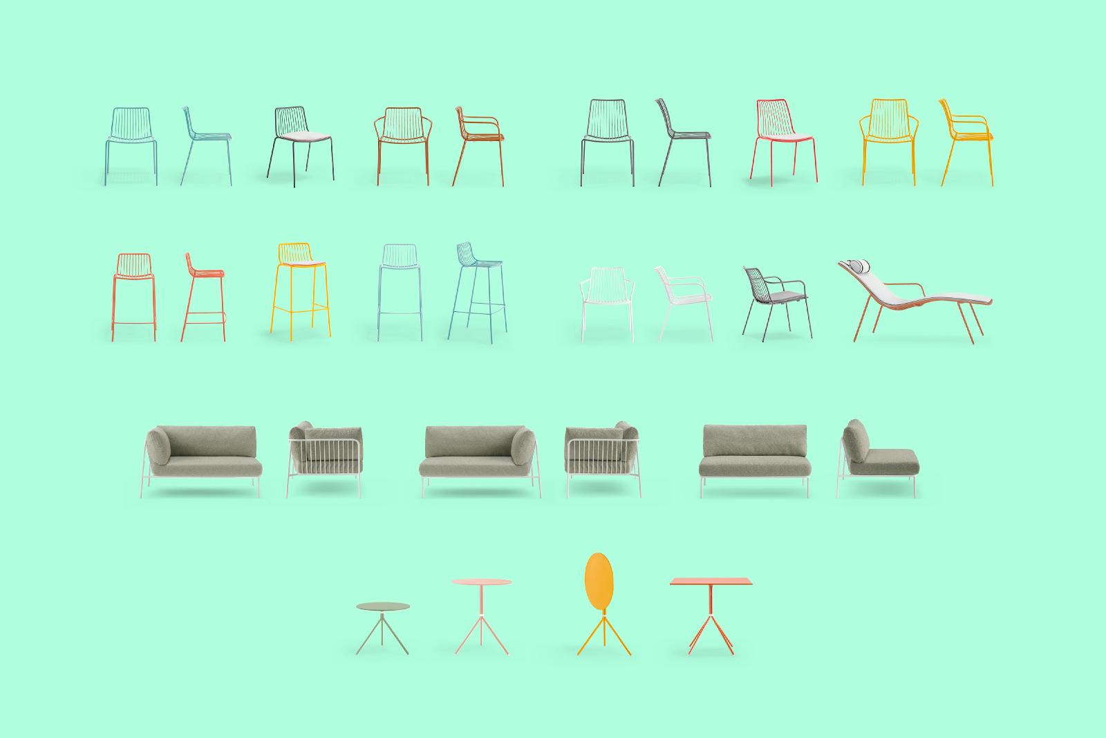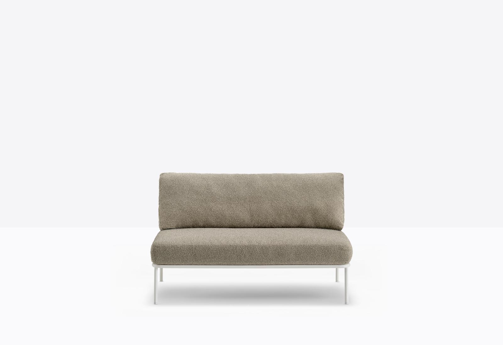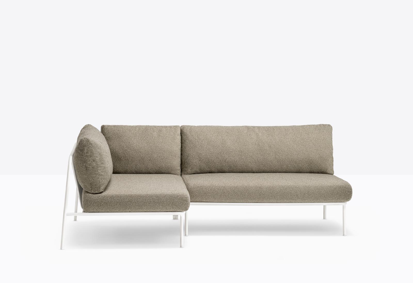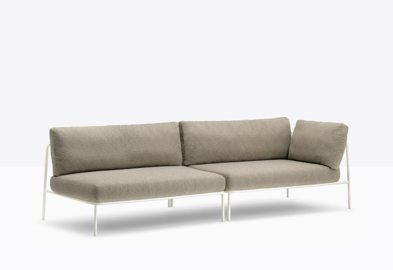 Nolita is a family of outdoor seatings which recalls the origins of a historic course, started by Mario Pedrali in 1963 with his first metal garden chairs. A sofa featuring simple and iconic shapes with steel tube frame powder coated for outdoor use and cushions in waterproof fabric and polyurethane foam inside. The versatility of Nolita sofa lies in the possibility to combine different modules, linear or angular, with right or left armrest, in order to create different compositions.