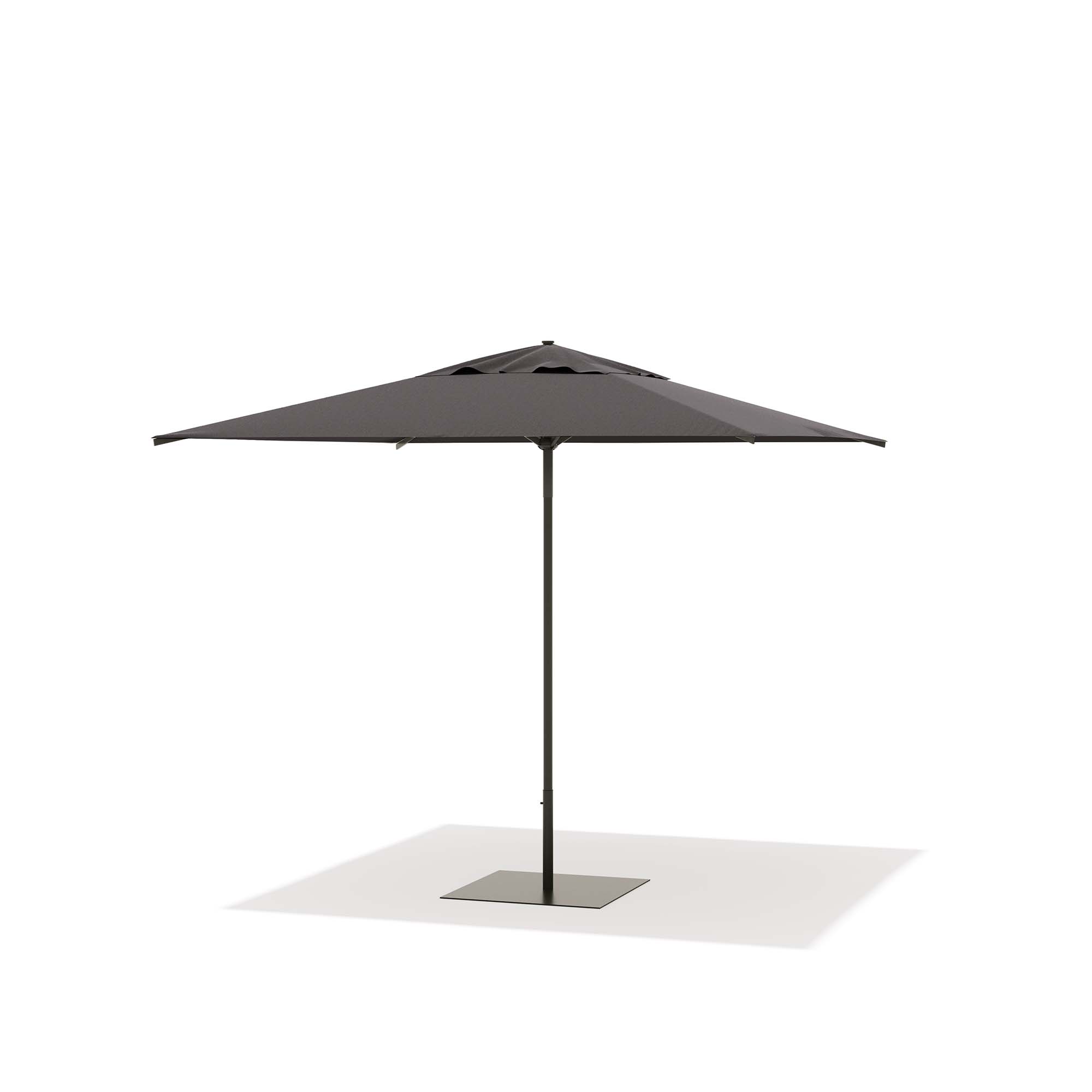 ONCE Product Information Aluminum frame painted gray, ecrù or white. 320 grams of olefin fabric in white, ecrù or charcoal color. Complete with anti wind bellows, opening a pulley and resin crowns.