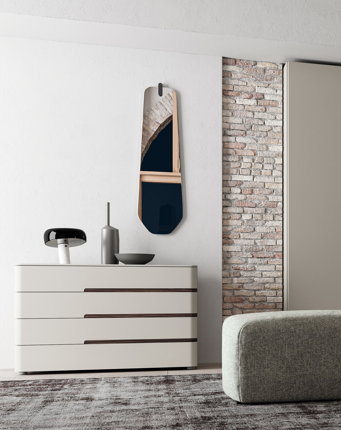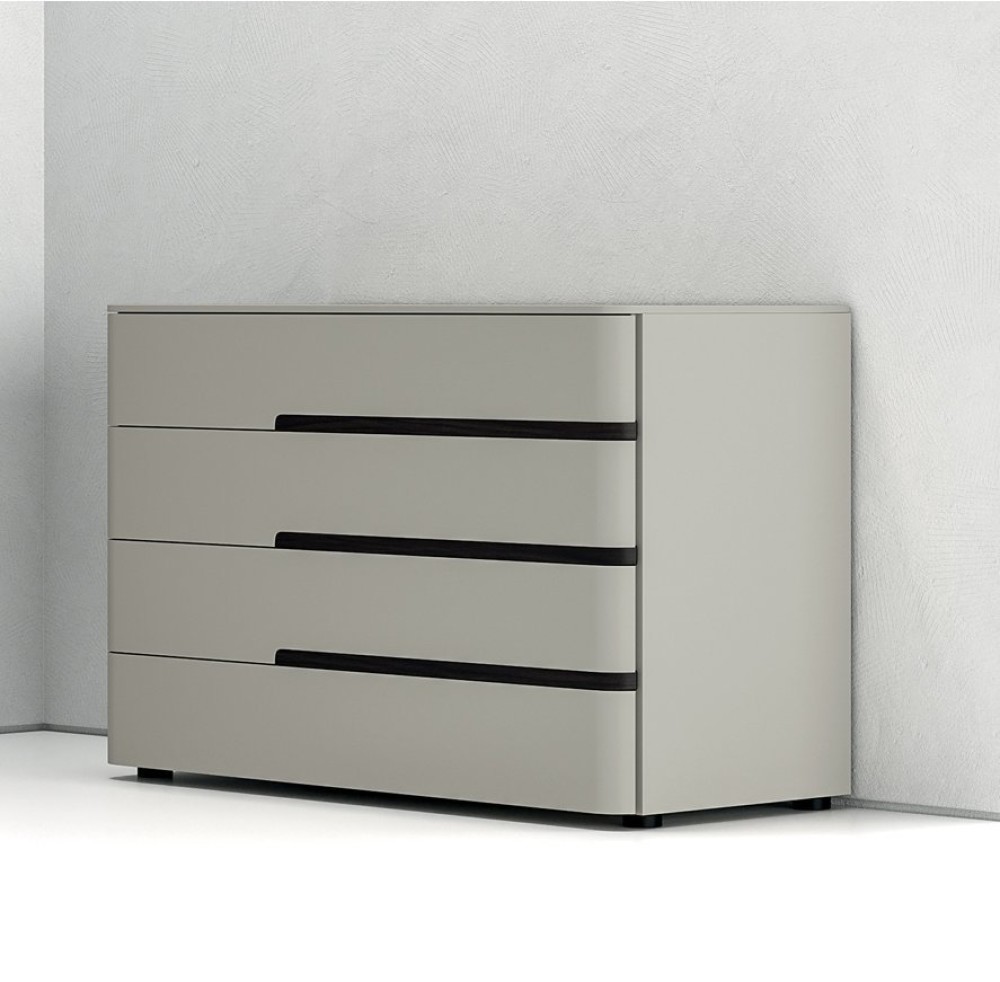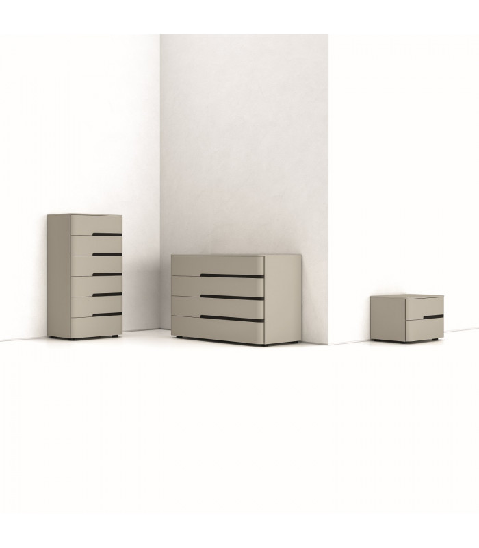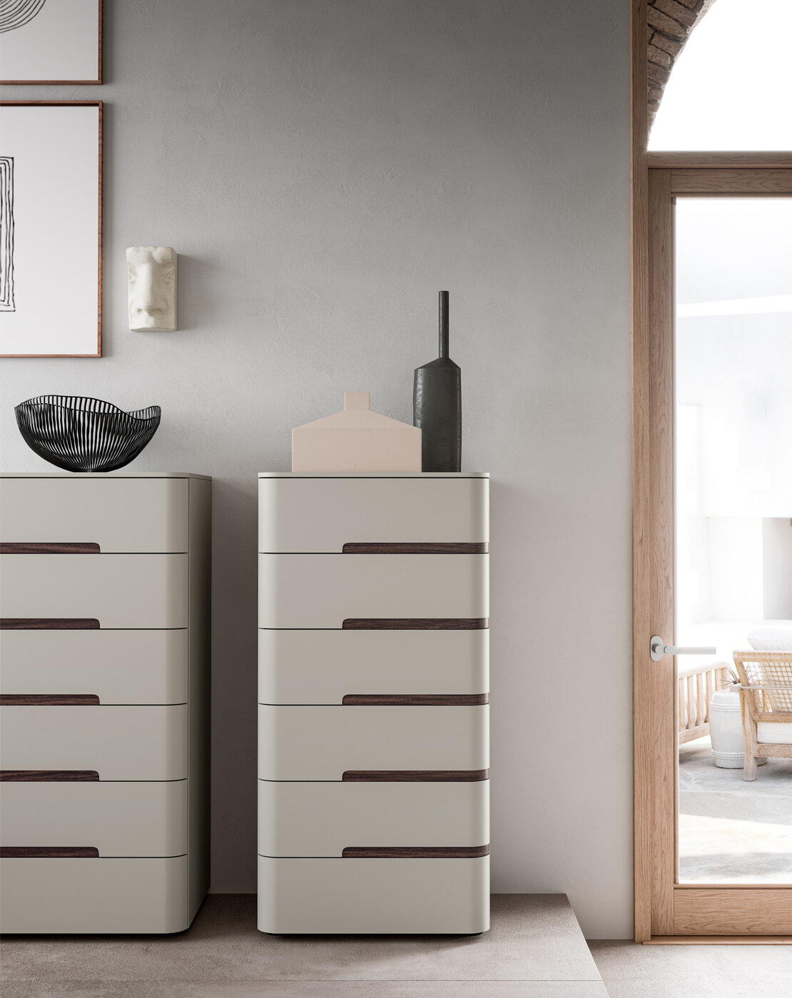 Opale range Dressers, bedside tables and chests of drawers with rounded lines and decorative detailing on the handle, which are practical too.