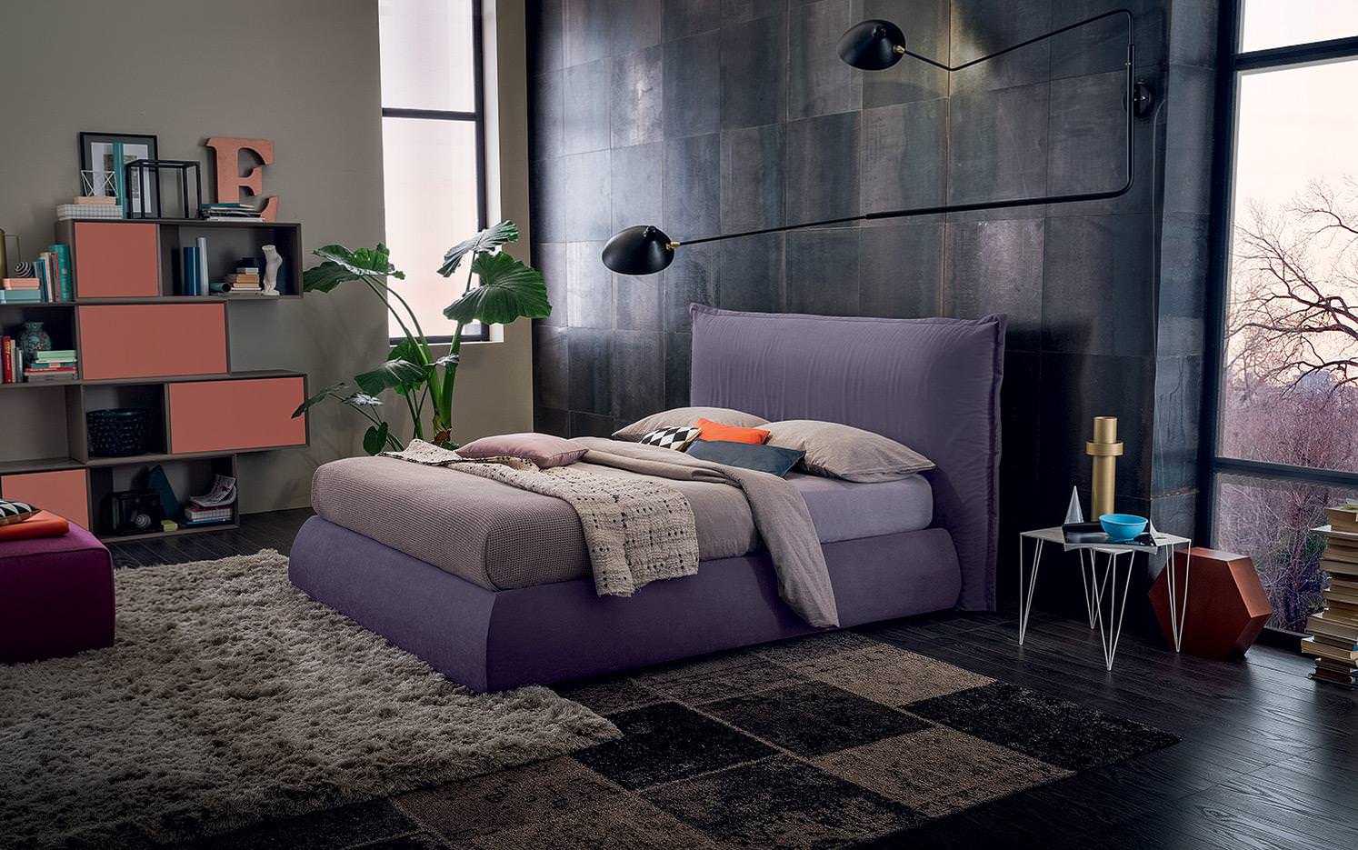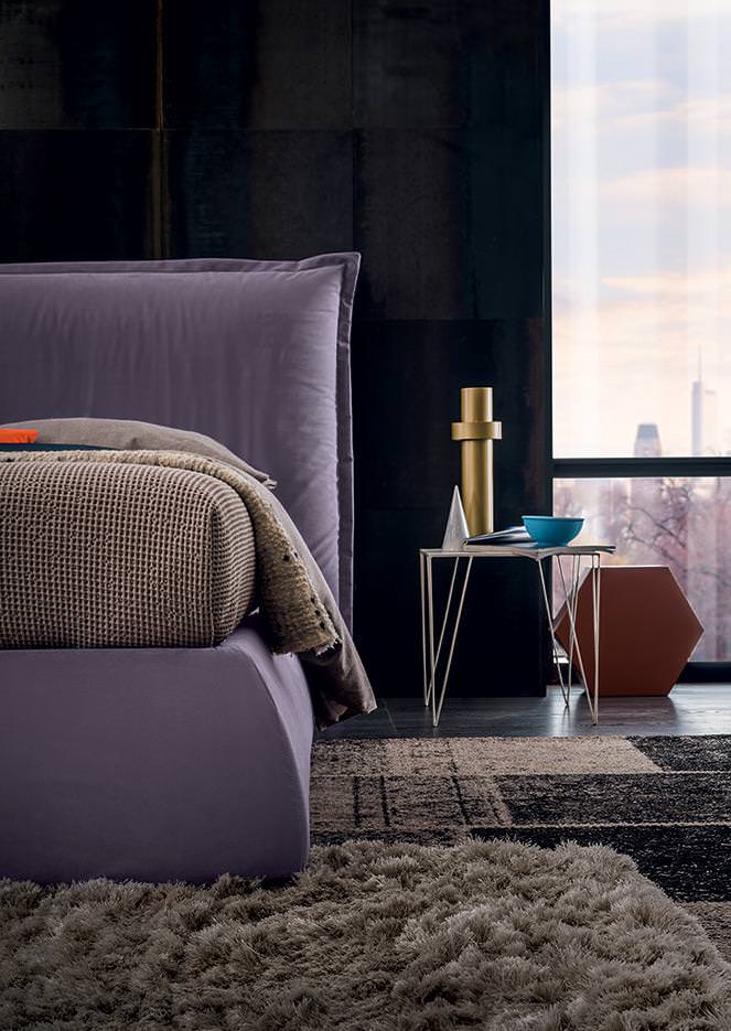 Parker is rendered distinctive by the single large cushion forming the headrest, decorated with a delicately frilled edge. The bed frame gently tapers out towards the bottom, increasing the perception of cosy softness.