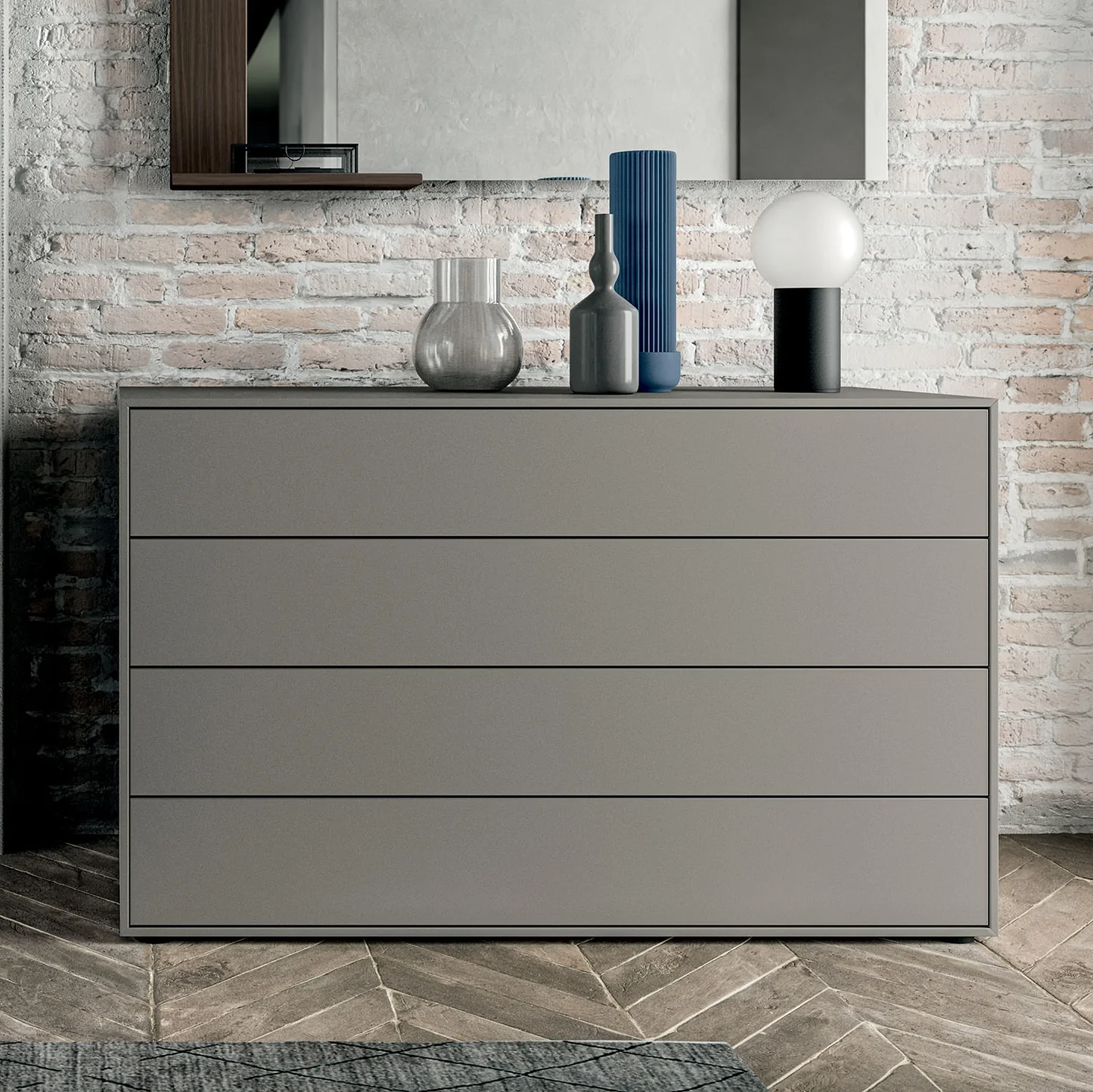 Quadro Filo Range Product Information Quadro Filo range Chests of drawers, bedside tables and dressers feature a frame made using the folding technique and doors flush to the fronts.The linear lines of this range ensure it adapts to all styles and needs, for a simply unique bedroom.