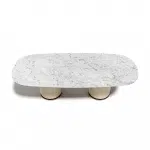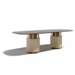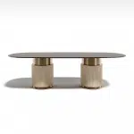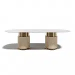 The cylindrical bases of Rock Oval table features a crown on its structure in metal finish.