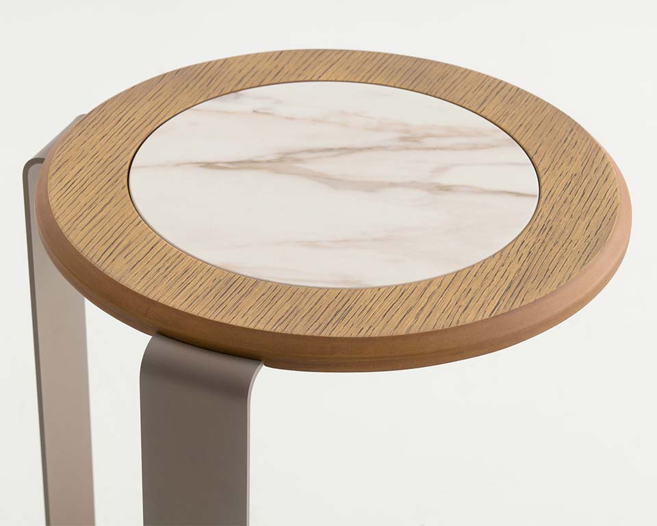 A side and a coffee table with an architectural approach. Geometrical friendly yet minimal can host your daily objects offering a meticulous attitude in the space where placed. Light in view and convenient for the production, Saturn resembles a twig and the blossom that accommodate the daily droplets.