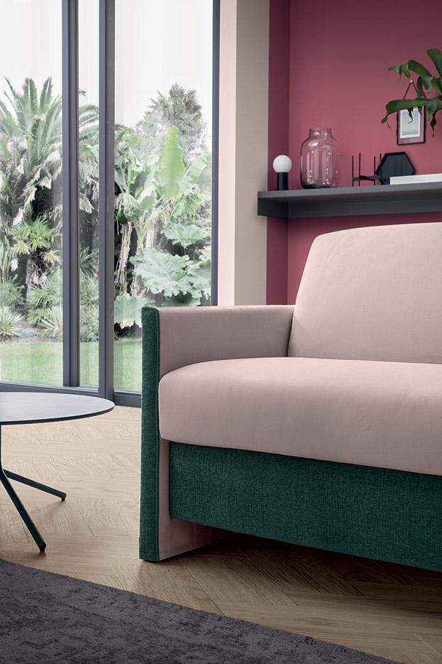 Sofa bed VEGAS Product Information Vegas promises your living area will never be monotonous. The combination of two colours and different materials ensures this sofa bed is truly unique.