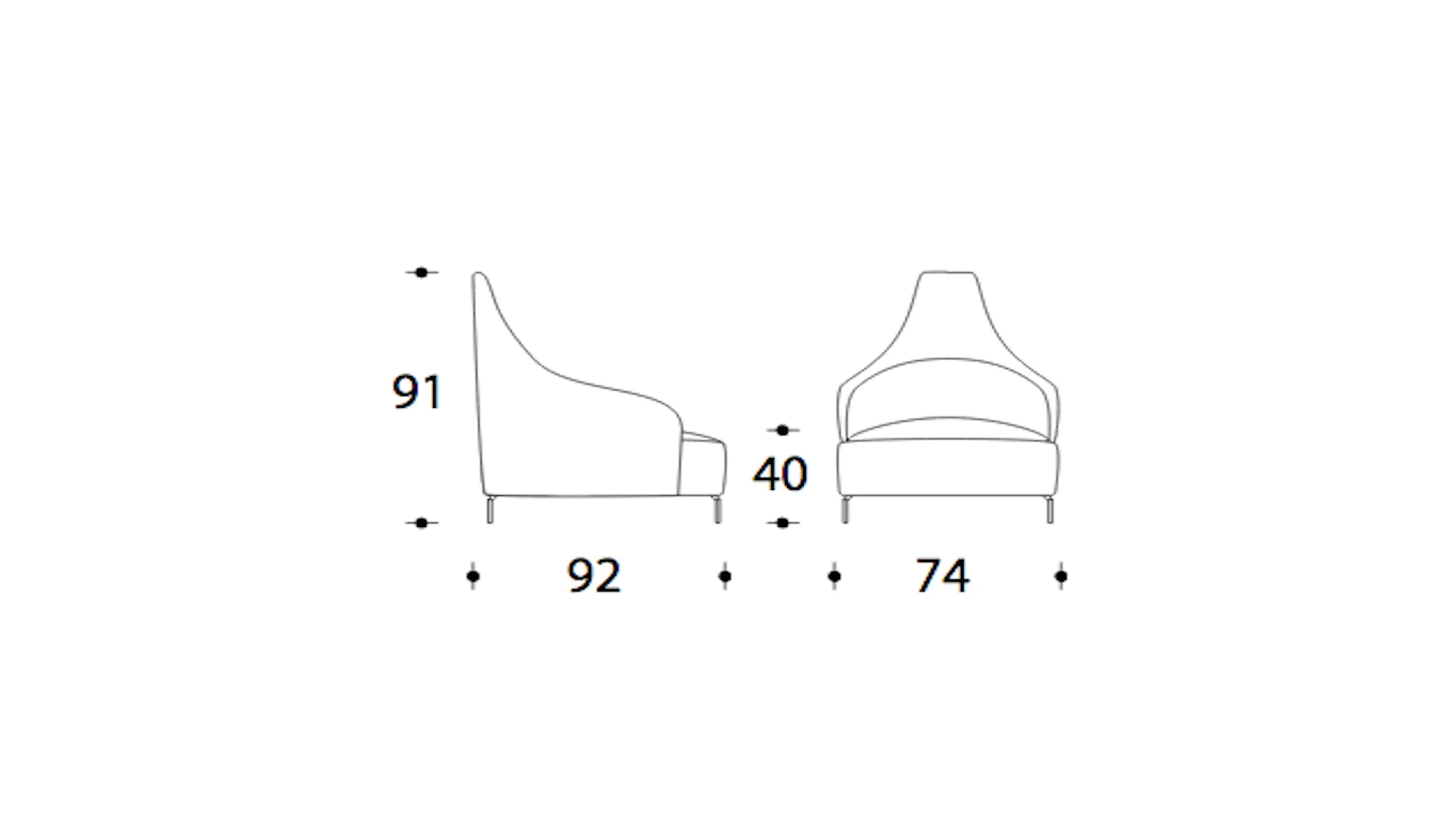 Unusual and eclectic in form, it is the expression of refined and expert design. The soft sinuosity of its proportions makes it comfortable and snugly fitting.