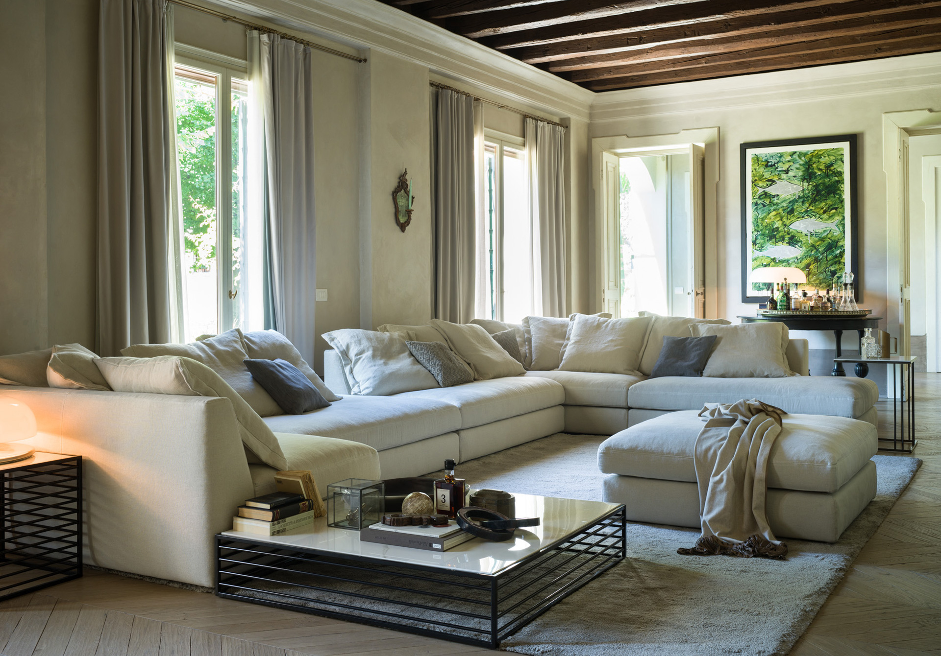 A seating program with generous volumes, available with two armrests of different depths, which allows you to furnish classic and modern environments of different sizes.