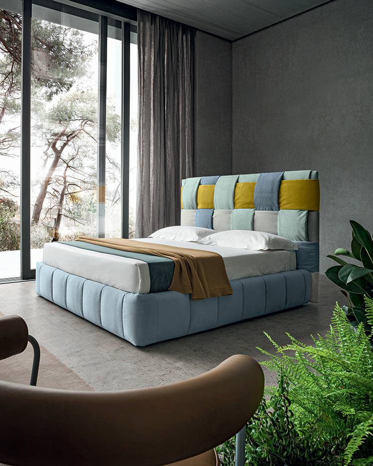 Nine bands of soft fabric are intertwined on the headboard creating a colourful meshwork. Tiffany allows great freedom in terms of arrangement. Unleash your creativity and mix and match different colours to continuously renew your bedroom.