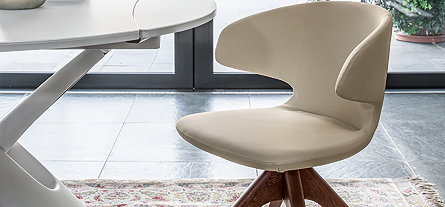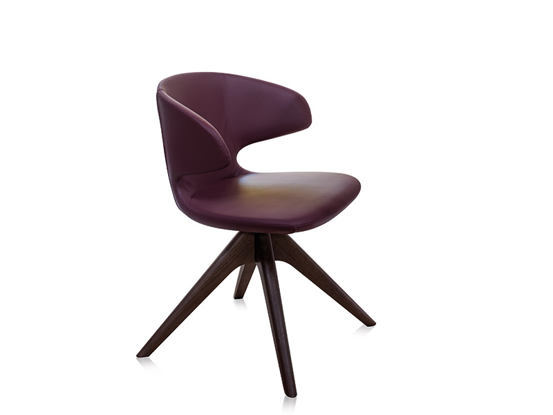 Swivel chair with wooden base. Matching stitching